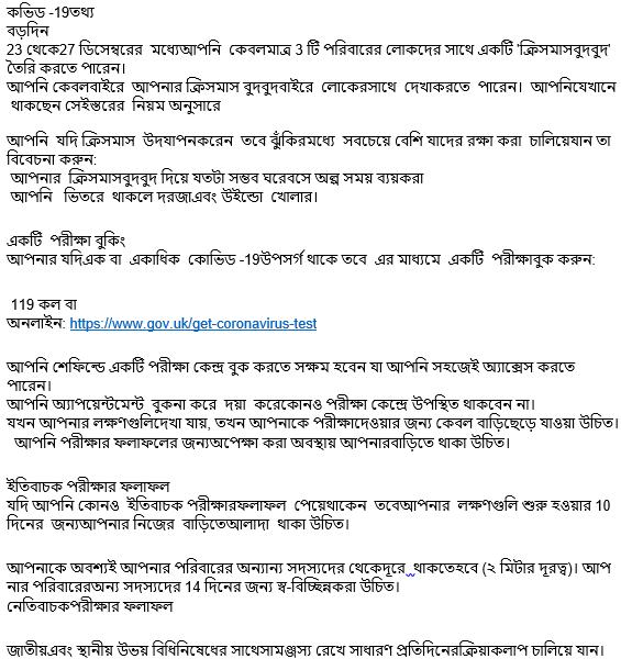 Sheffield City Council has information about Covid-19 symptoms, local test sites and how to isolate in a number of different languages here: https://www.sheffield.gov.uk/coronaviruscommunityresources