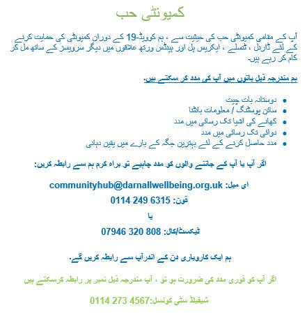 We may not be able to run our groups in person at the moment, but remember that Darnall Well Being are still here for you through the winter! Email communityhub@darnallwellbeing.org.uk, phone 0114 249 6315 or text/call 07946 320 808 for any of the following: