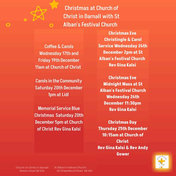 Uniquely U Charity Shop: Wednesdays and Fridays 10am-2pm Foodbank (referral only): Tuesdays noon-2pm and Thursdays 4-6pm Grace Tots (under 3s, term time only) 9.15-11.30am Youth (term time only): 7-9pm New addition: Chairobics every Wednesday 11.45am-12.45pm £6, no need to book Carol Services: Sunday 21 December 2pm & 6pm. Book your free tickets via Gracechurchsheffield.co.uk/whats-on