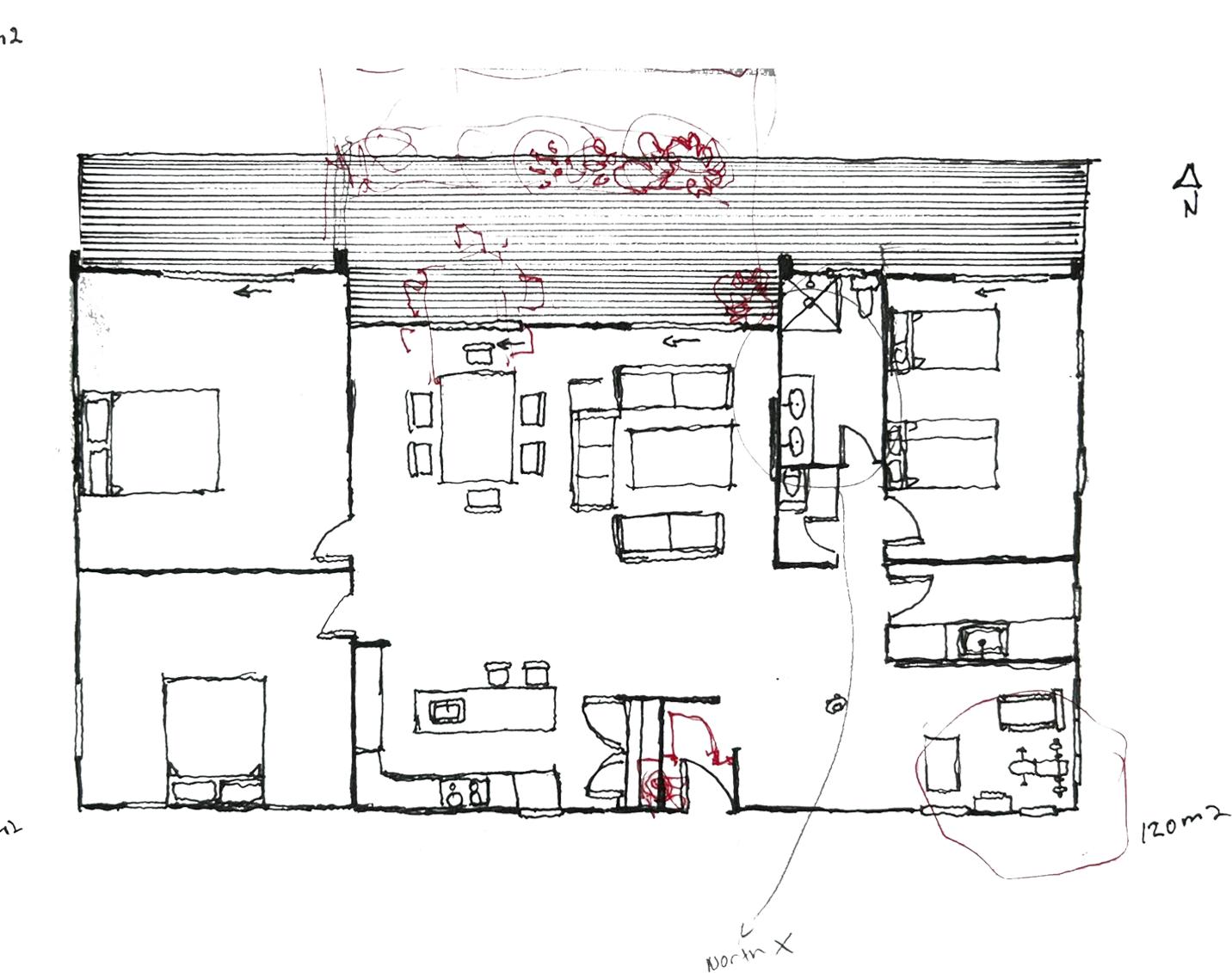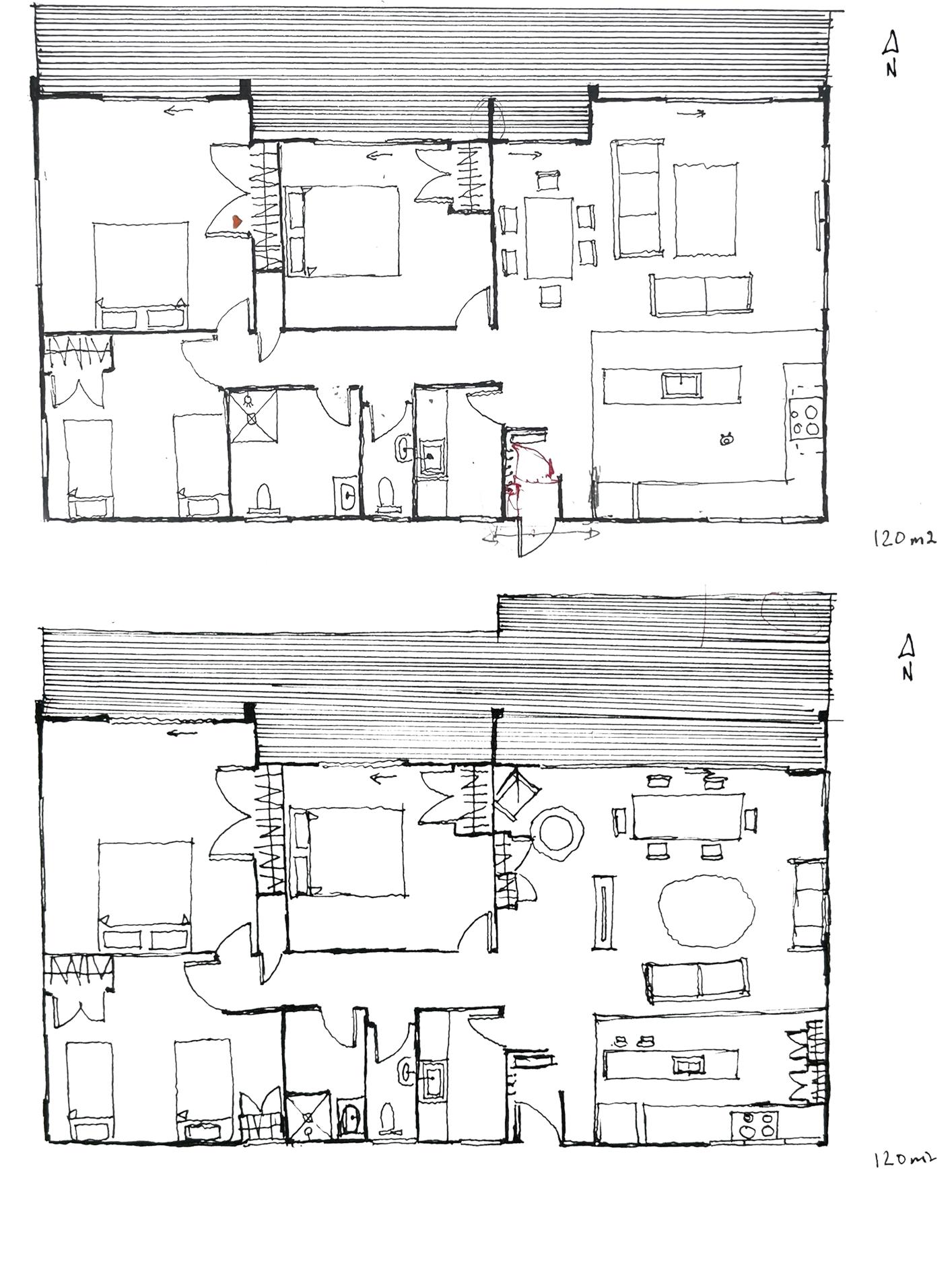 Trying out various plan layouts in order to accommodate multigenerations. Along with adding storage areas and exposing the space up to the natural light.