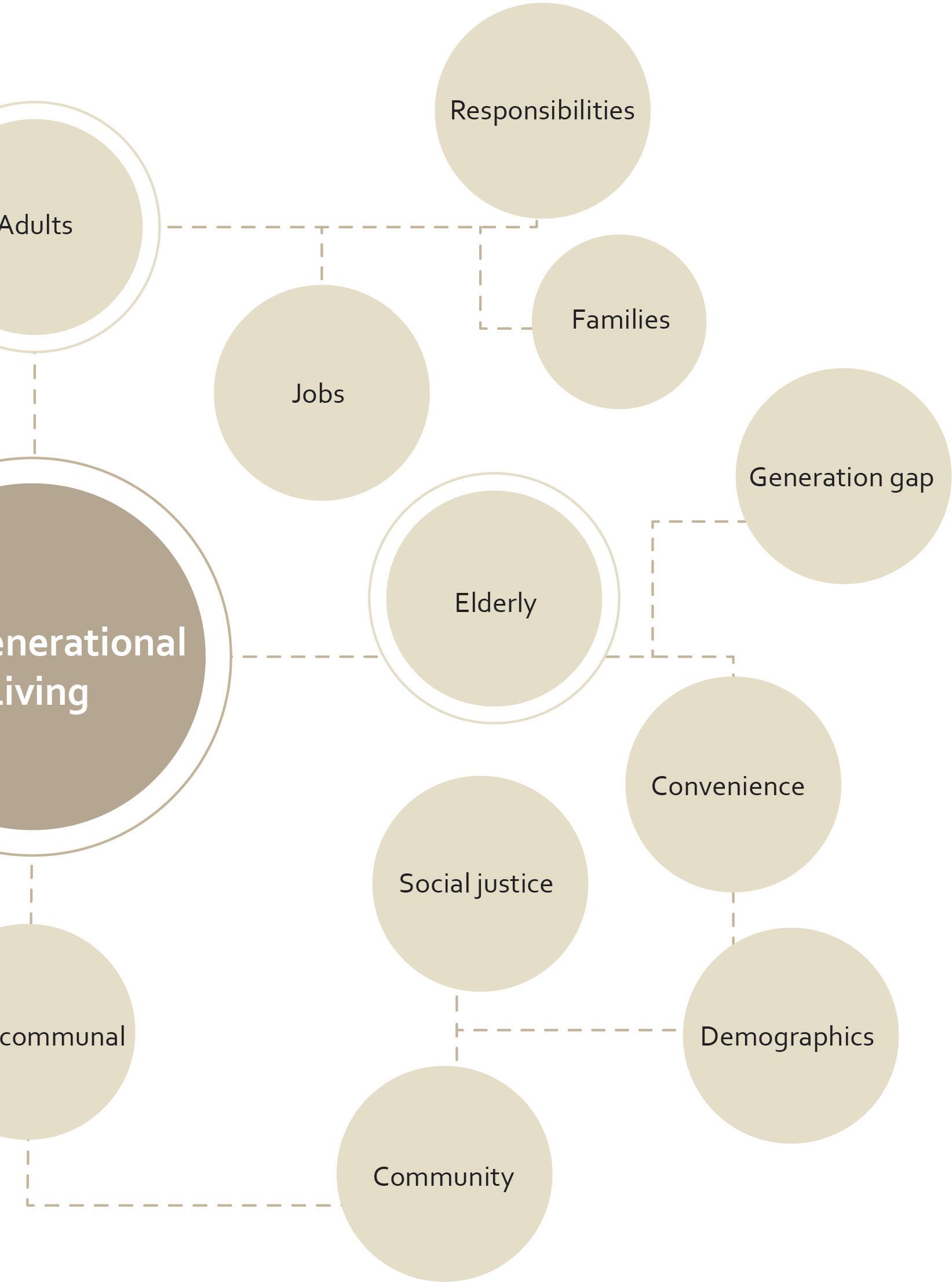 The concept of intergenerational living is further defined by these essential words. When developing this project, these are taken into account.