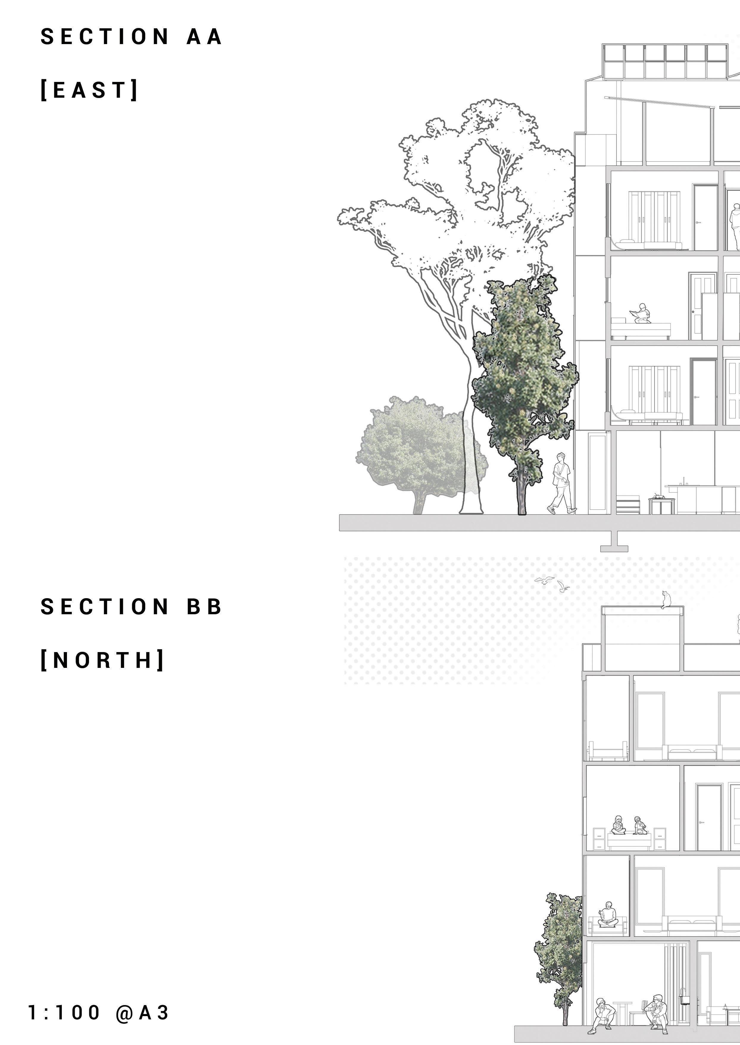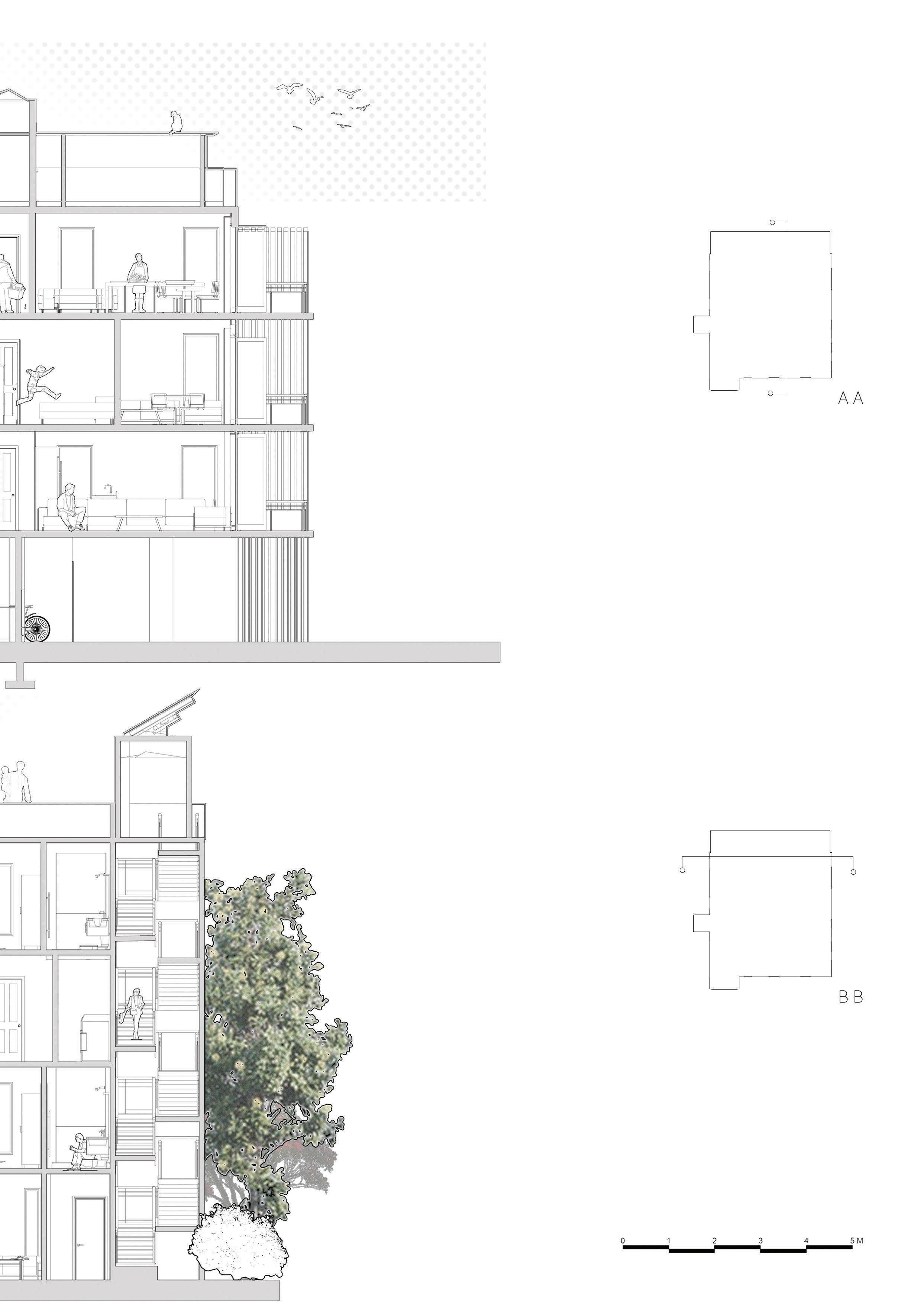 This projects strategy is to distribute diverse functions amongst apartments produces a living situation that relies on sharing while increasing the efficiency of the internal architecture.