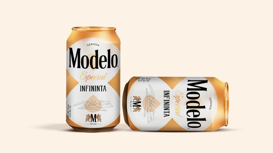 Propuesta de latapara el lanzamiento de la introducción a RD de latas en tamaño de 8 oz, combinando la similitud de un 8 con un signo de infinito y los infinitos momentos que se pueden compartir con una Modelo.