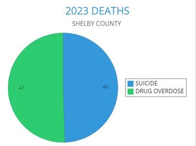 “The data below obtained from the Shelby County Coroner’s Office is a representation of drug over doses and suicides in Shelby County between January 2021 and July of 2024. As you can see, over the course of the last 3 years there has been a marked increase in suicides. In 2021, there were 65 overdoses and 30 suicides. By December 2023, the gap between the two closed dramatically with 47 overdoses and 46 suicides for 2023. This year appears to be on a similar path as last year. Suicide and Addiction are major public health concerns and often times go hand in hand. Compact is here to help address both suicide and substance misuse. ”