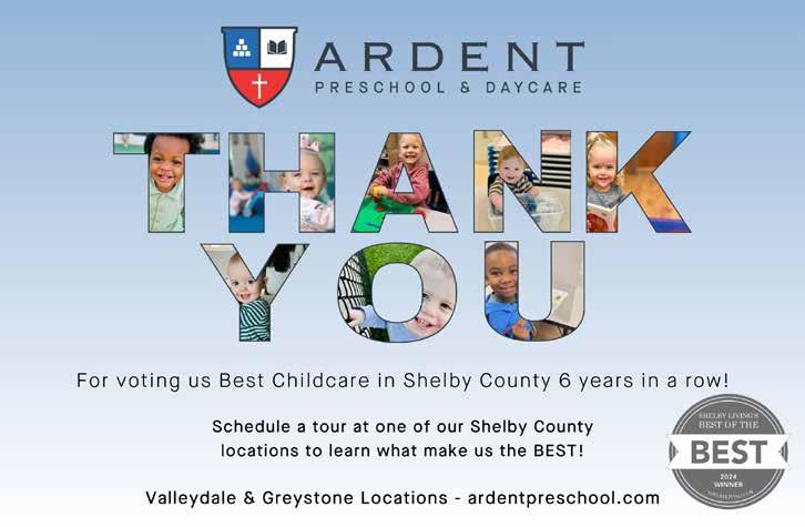 SPAIN PARK WRESTLING • GINZA SUSHI & KOREAN BBQ • BLOOD AT THE ROOT MAY/JUNE 2024 ShelbyLiving.com Volume 18 | Issue 3 $4.95 LIMITLESS JORDON BRAY CHAMPIONS TRACK AND FIELD SHELBY LIVING’S BEST YOU VOTED. WE TALLIED. SEE THE 2024 BEST OF THE BEST WINNERS INSIDE. BACK TO THE BASICS FRESH AIR FAMILY’S FOUNDING PRINCIPLES