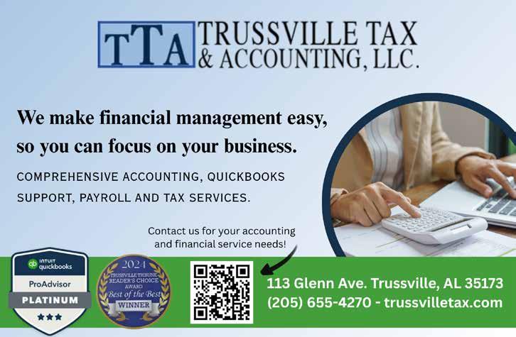Trussville Living Magazine is published bimonthly by Shelby County Newsmedia Inc., P.O. Box 947, Columbiana, AL 35051. Trussville Living Magazine is a registered trademark. All contents herein are the sole property of Shelby County Newsmedia Inc. [the Publisher]. No part of this periodical may be reproduced without written permission from the Publisher. Please address all correspondence (including but not limited to letters, story ideas and requests to reprint materials) to: Editor, Trussville Living Magazine, P.O. Box 947, Columbiana, AL 35051.