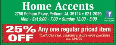 • AC • HEATING • PLUMBING • GENERATORS • FINANCING OPTIONS • 24/7 SERVICE • RESIDENTIAL & LIGHT COMMERCIAL • MAINTENANCE PLANS AVAILABLE CallStandard.com 205•624•5046 $ 50 $ 50 OFF ANY SERVICE! OFF ANY INDOOR AIR QUALITY ACCESORY Valid with repair only during normal business hours. Coupon must be presented at time of service. Cannot be combined with other offers or discounts. Some restrictions apply. Expires 01/31/23 - SCM2211 Purchase and installation of new air quality accessory required. Cannot be combined with other offers or discounts. Some restrictions apply. Expires 01/31/23 - SCM2211 LOCALLY OWNED AND OPERATED SINCE 1939 AL LIC#83594