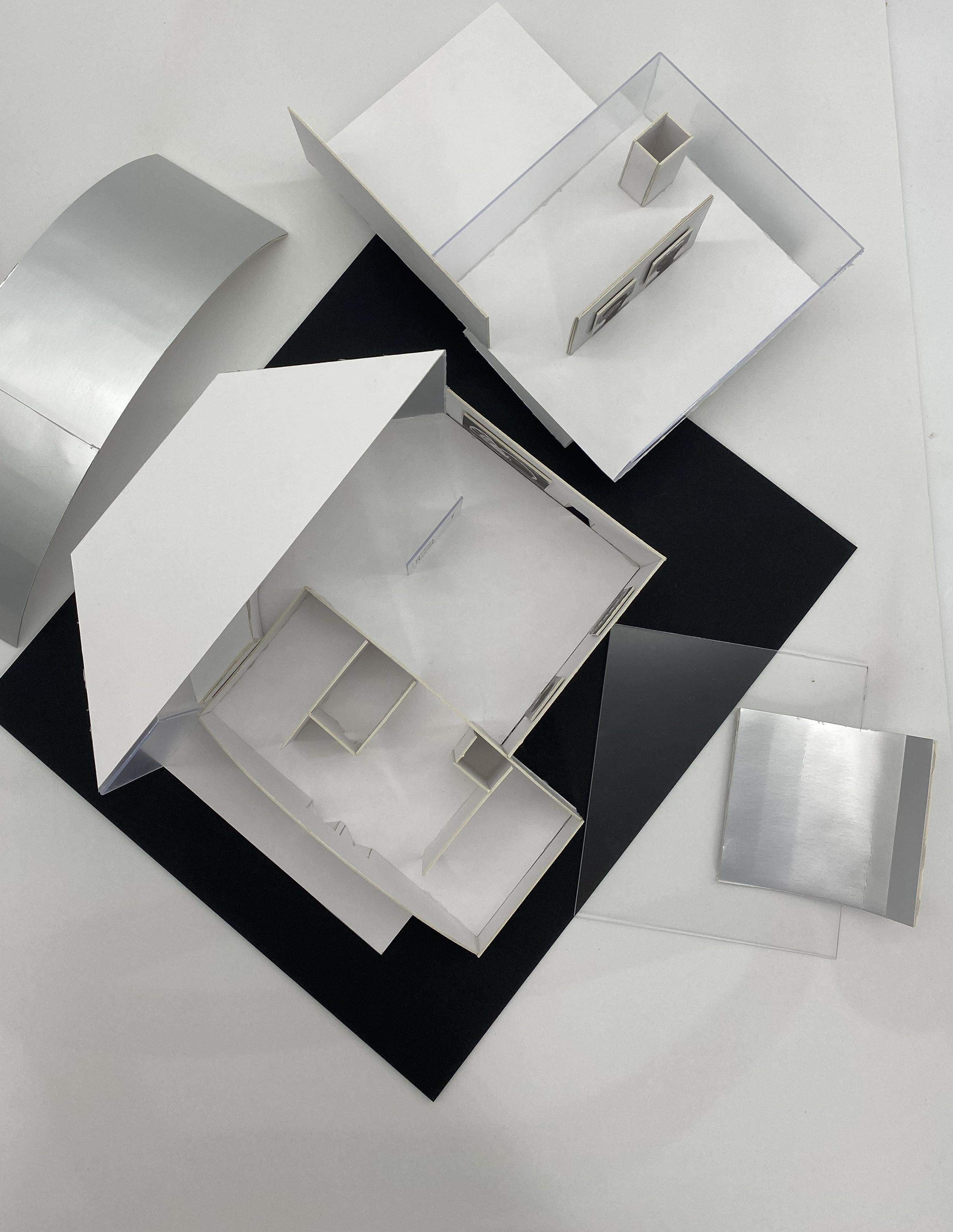 In this project, I designed a structure for religious practice. I focused on the way light travels through the space, purposefully placing openings to represent means of the religion. I conducted research on the religion and explored it artistically. For the digital designing of this model, I used Sketch Up, then made the physical model out of foam core and plastic.