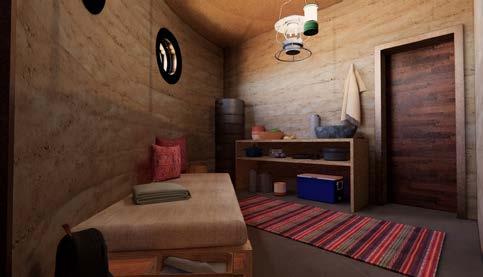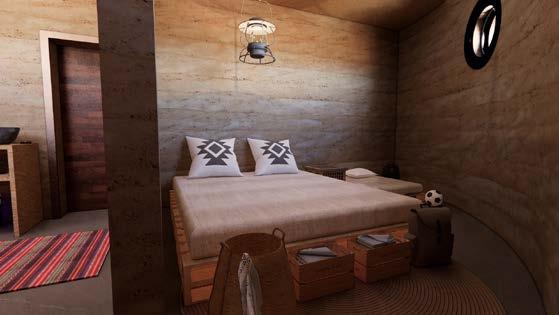 Inti, the Incan sun god, is the source of light and warmth in the world and also protects the Incan people. Inti’s symbol influenced the footprint of the structure. To construct this structure, refugees will use an abundant natural resource, dirt, to form rammed earth walls, along with other found materials. The family will build using the cambio de fuerzas method, using the kit provided. Gabriella will use Peruvian weaving techniques, colors, and patterns to make rugs and