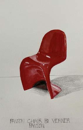 These are all hand renderings of furniture and designs that are famous or that I designed myself. They were created with the mediums of watercolor and markers.