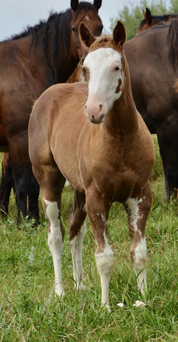Every paint foal is eligible for the Canadian Colours Futurity. The foals with a *Canadian Colours Futurity Nominated wrote on their pedigree is nominated already. The CCF is a futurity for paint Weanlings-Three year olds. For more information please go to- https://albertapainthorseclub.ca/canadian-colours-futurity or message Shelby!