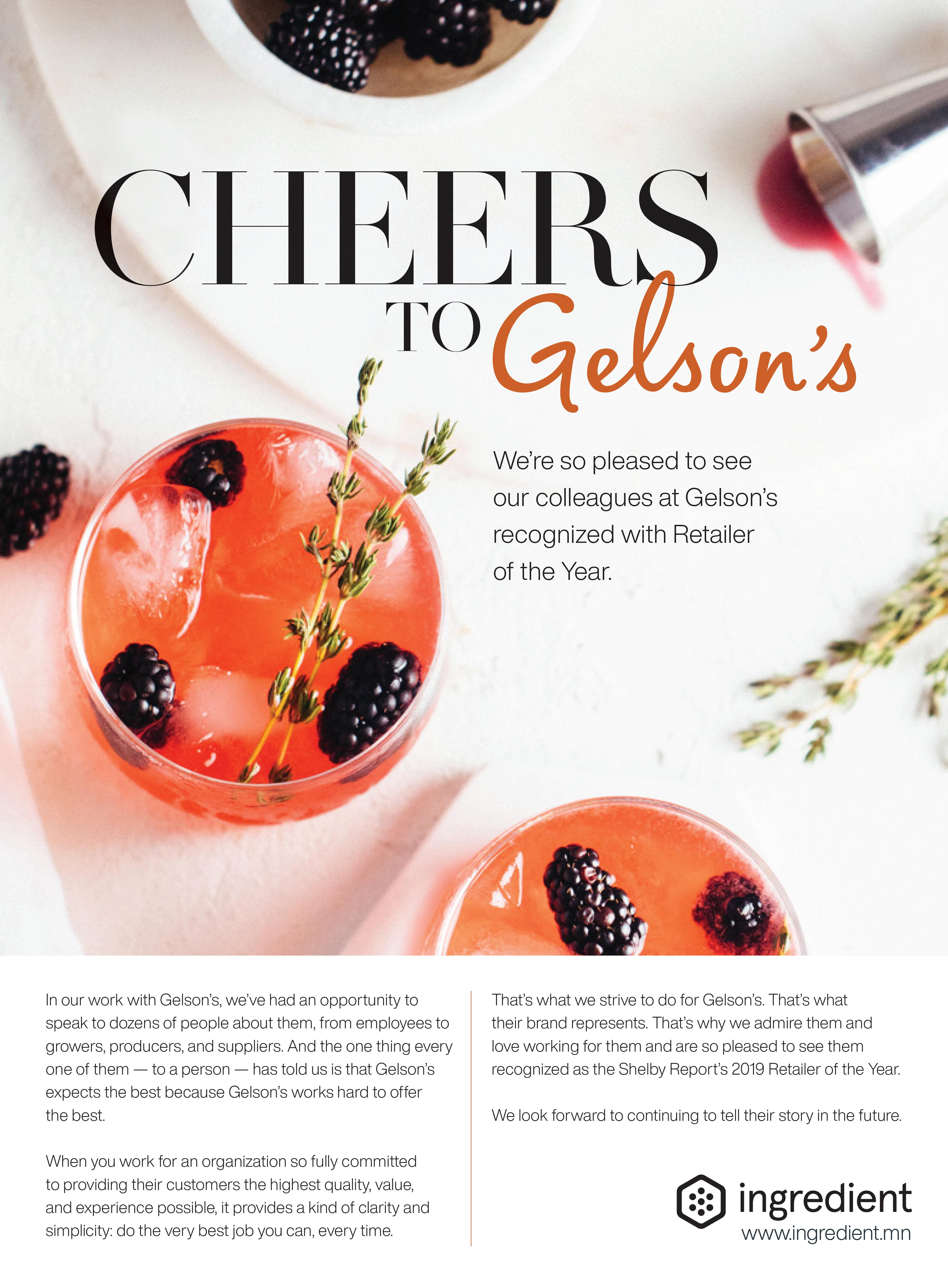 Southern Glazer’s Wine & Spirits would like to congratulate Gelsons on being selected as the 2019 West Retailer of the Year. We are proud to share in your success. SouthernGlazers_Gelsons_WEROY_122019.indd 1 10/31/19 3:20 PM