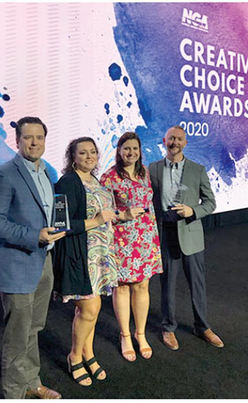 Accepting awards for BGC during NGA’s annual meeting in 2020 were, from left: COO Trent Brookshire; Jennifer Dugie, director of brands and advertising; Ashleigh Endicott, FRESH and events supervisor; and Weston Gorman, CM-centric coordinator.