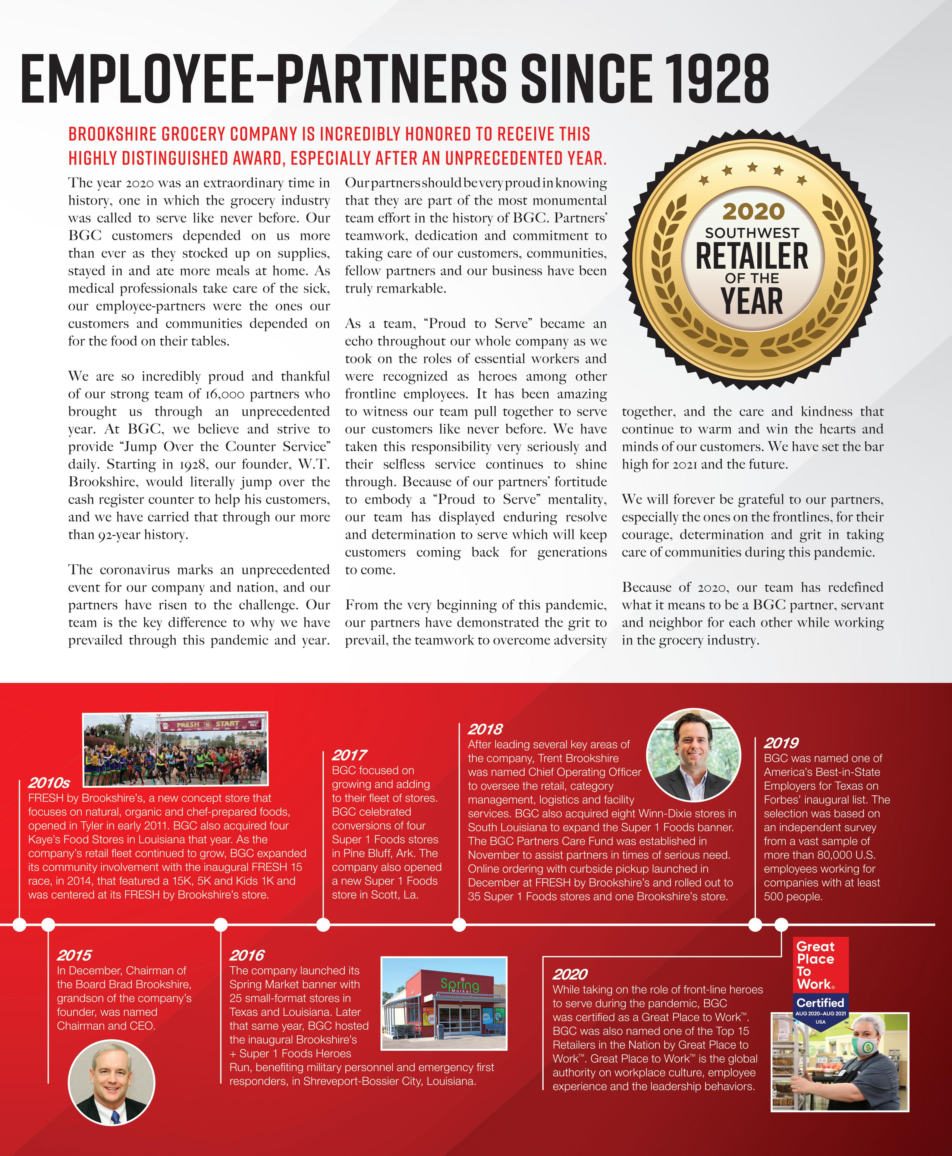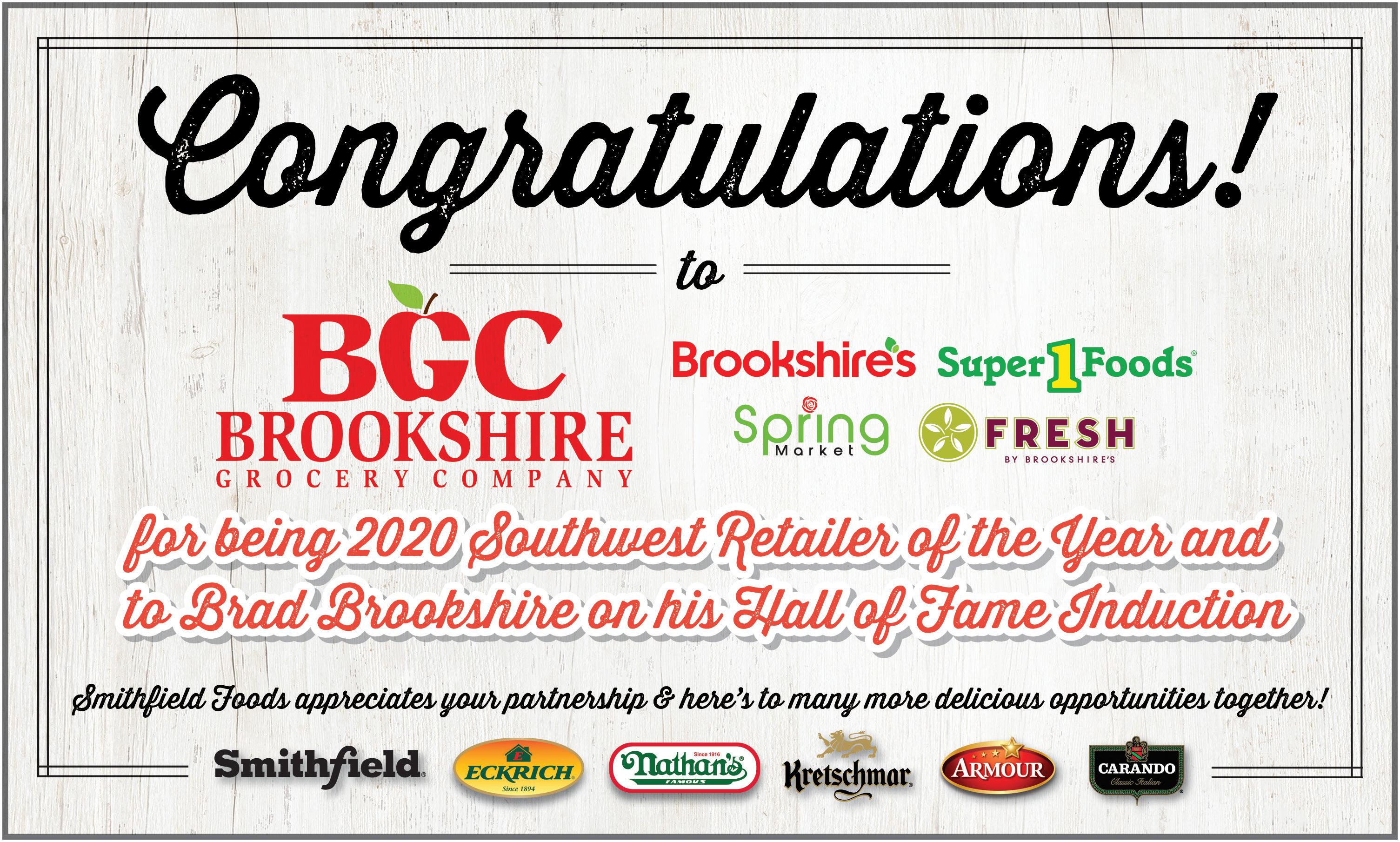 We would like to congratulate the 2020 Southwest Retailer of the Year and Brad Brookshire on being inducted into the Food Industry Hall of Fame.
