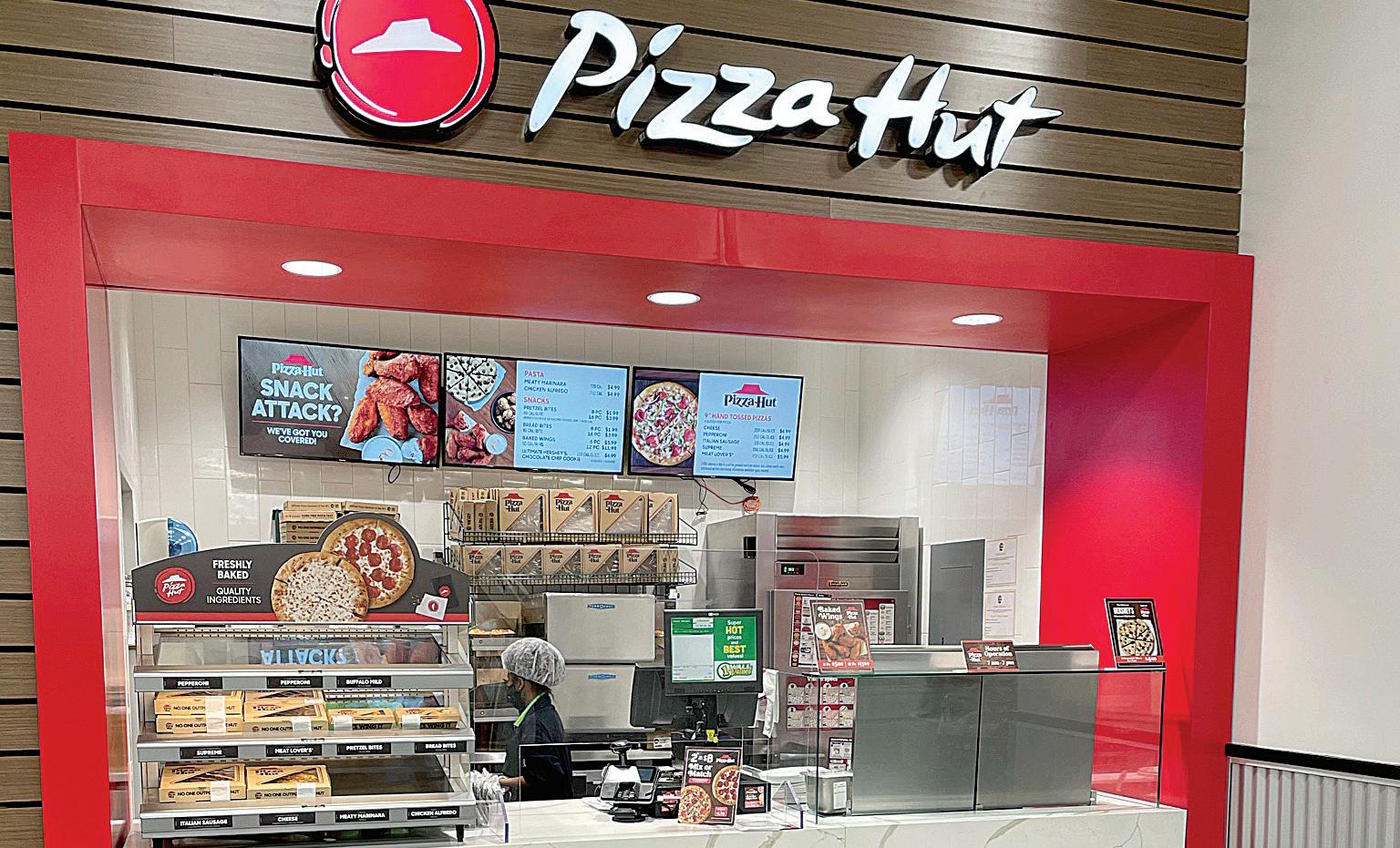 The Pizza Hut kiosks offer a menu with hot items that include personal pizzas, pastas, hot wings, ultimate Hershey’s chocolate chip cookies and parmesan and pretzel bites.