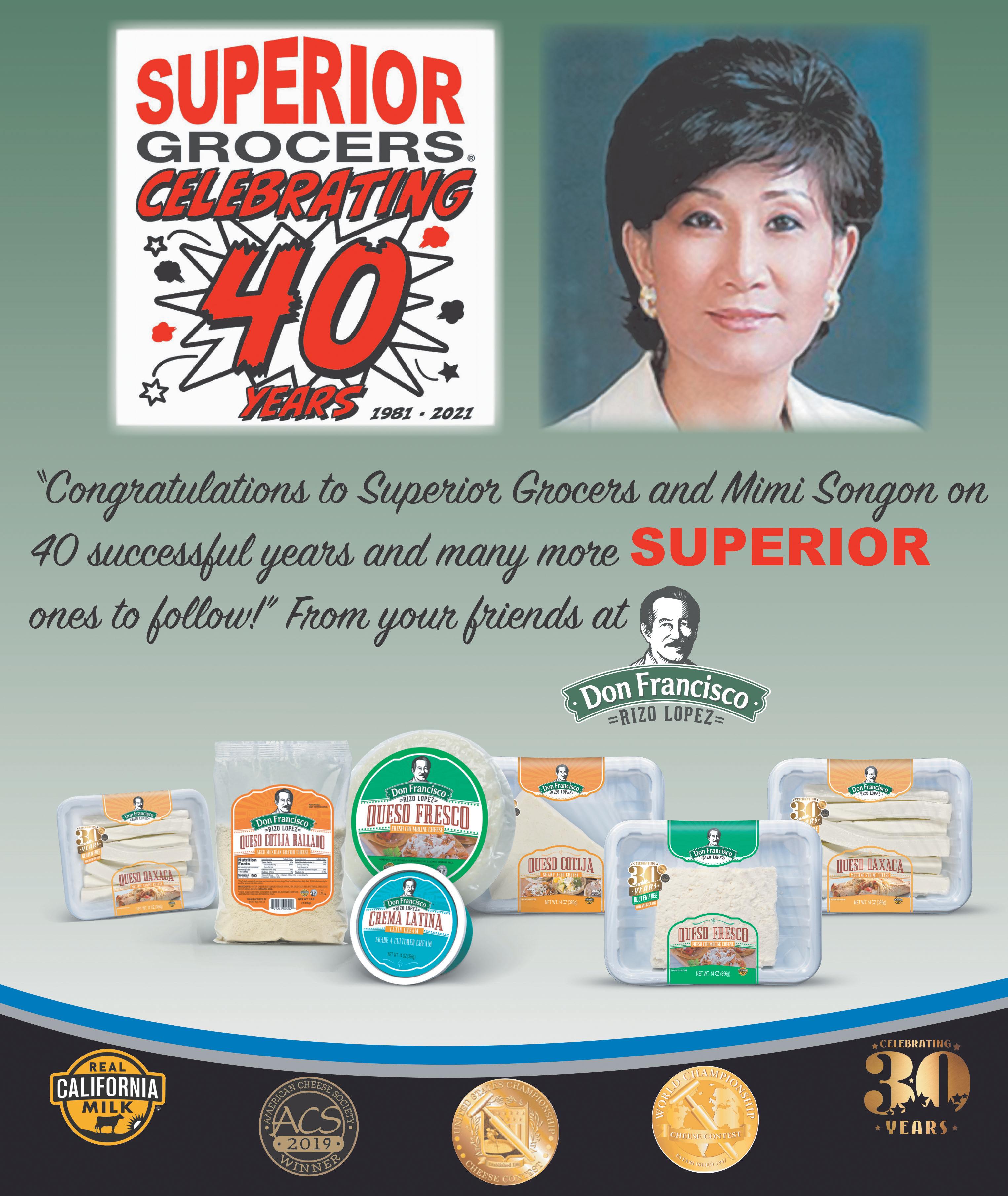 Congratulations to Superior Grocers! 40 years is an incredible milestone. Additionally, congratulations to Mimi Song on being inducted to the Food Industry Hall of Fame. Clorox is proud to be a part of your rich history and we look forward to many more years of partnership.