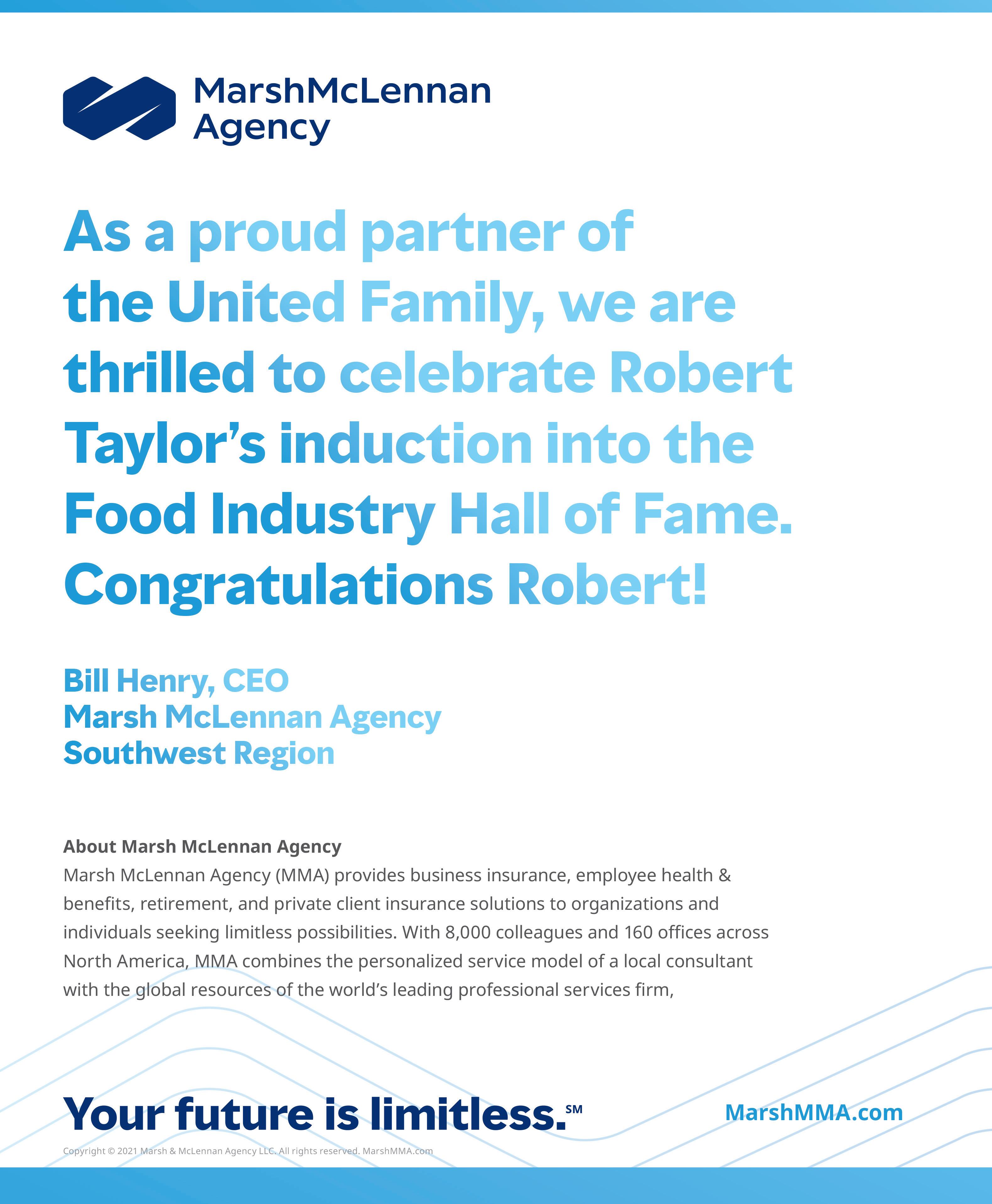 Taylor retired as CEO of the United Family in March. Today, he serves as EVP and senior advisor for the company, continuing to spearhead United Food & Beverage Services.