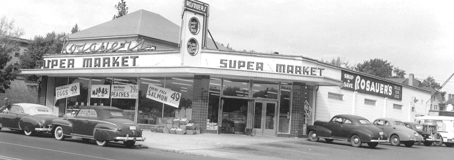 Rosauers Supermarket was founded in 1934, when J. Merton “Mert” Rosauer, just out of school, bought a small grocery store on the corner of Sprague and Lee streets in Spokane. According to the company’s website, his parents loaned him $1,000 to finance the purchase.