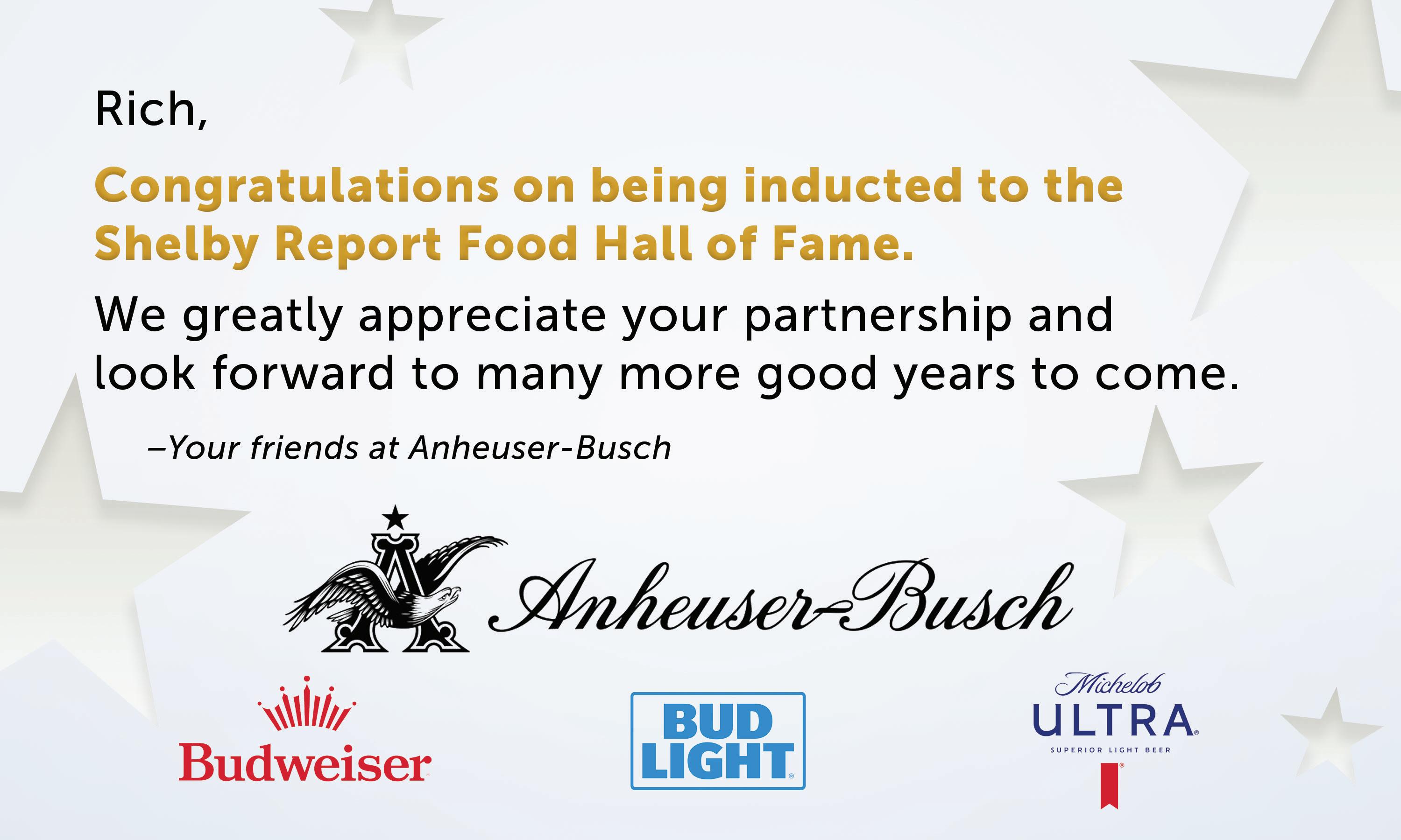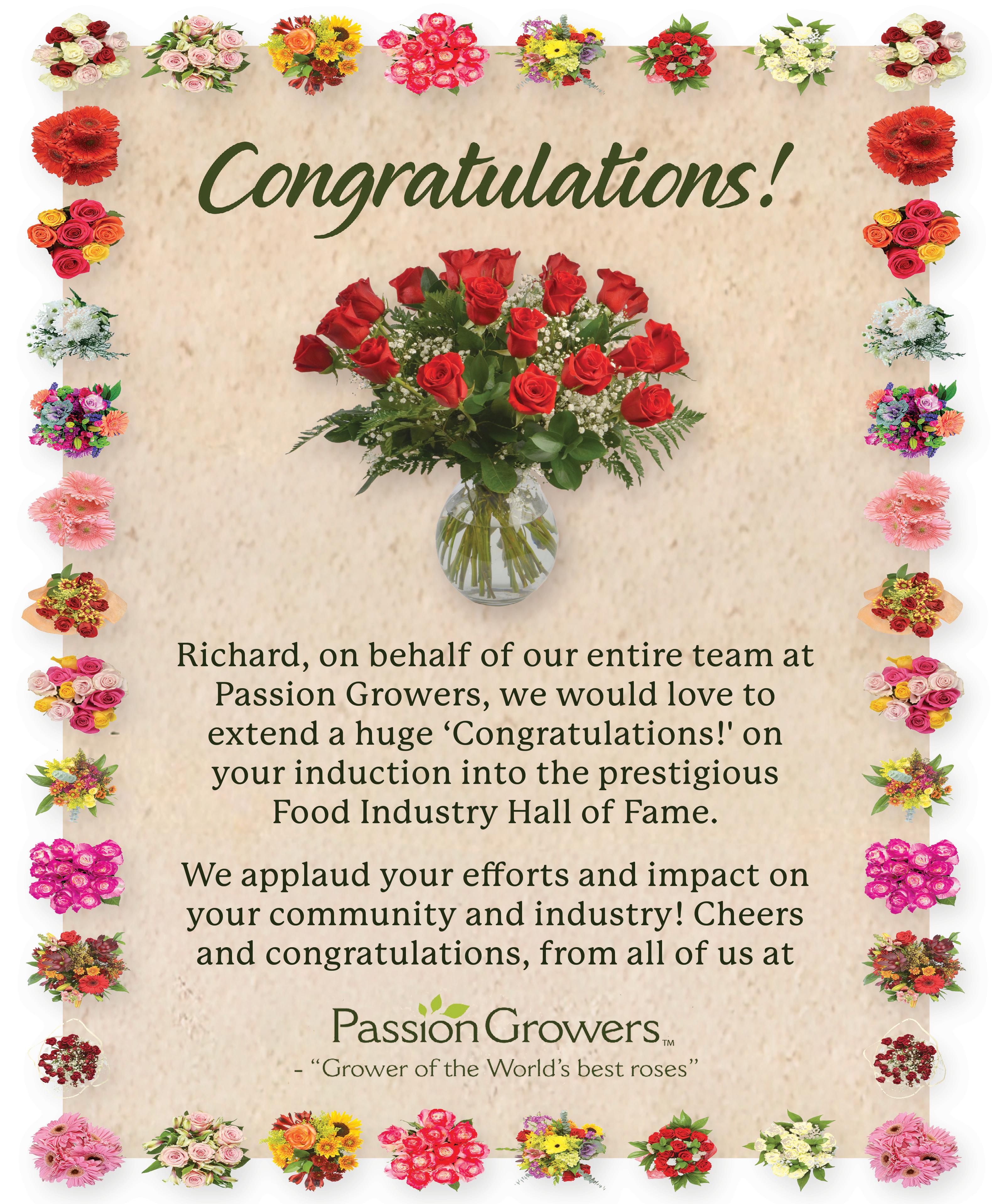 “Congratulations on your introduction to the Food Industry Hall of Fame. And so well deserved.