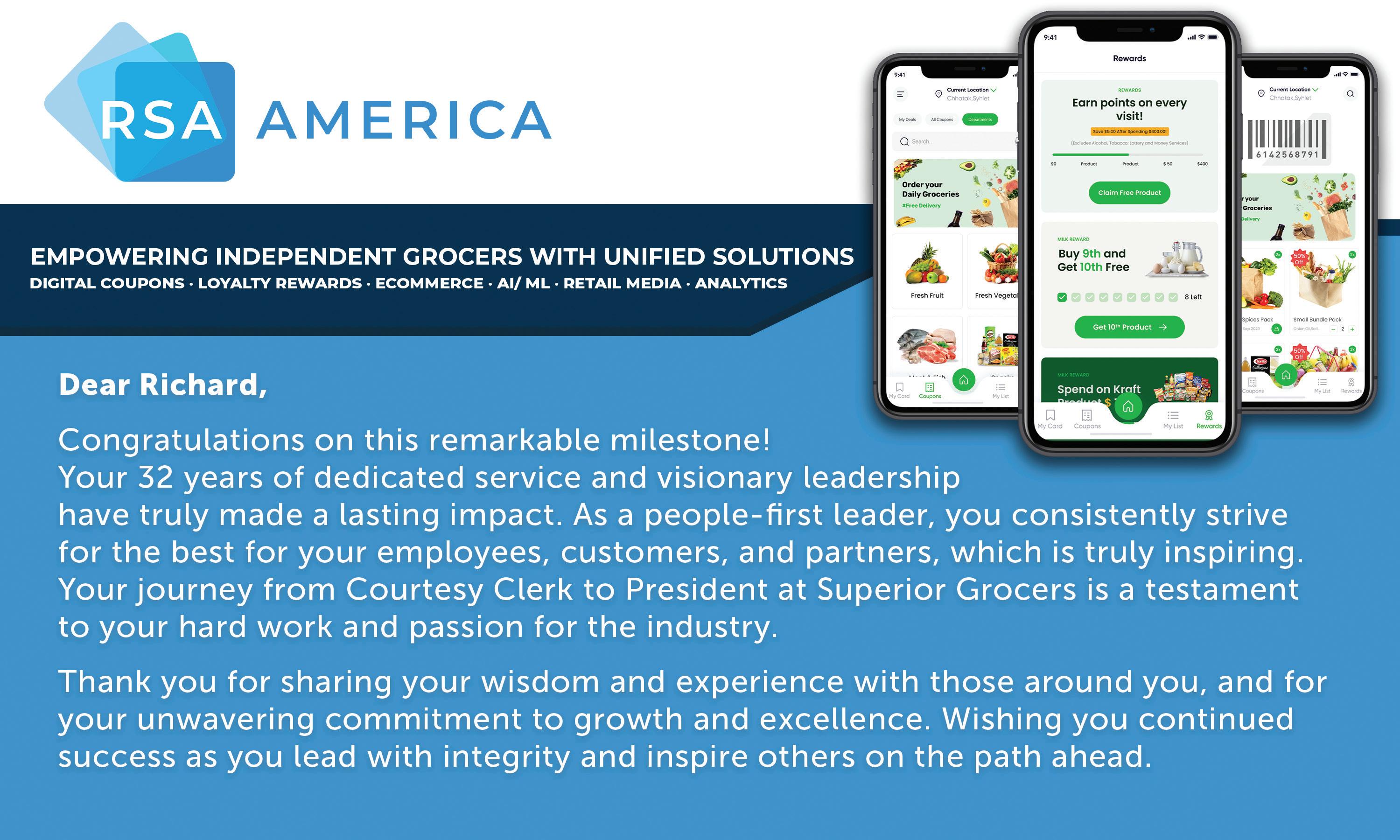 “Your passion for the business equals your passion for your company associates and, of course, your customers. As you and I have always discussed, great leaders have one trait in common. Their IQ equals their EQ. Keep leading like you do, Richard. Every day. All the best.”