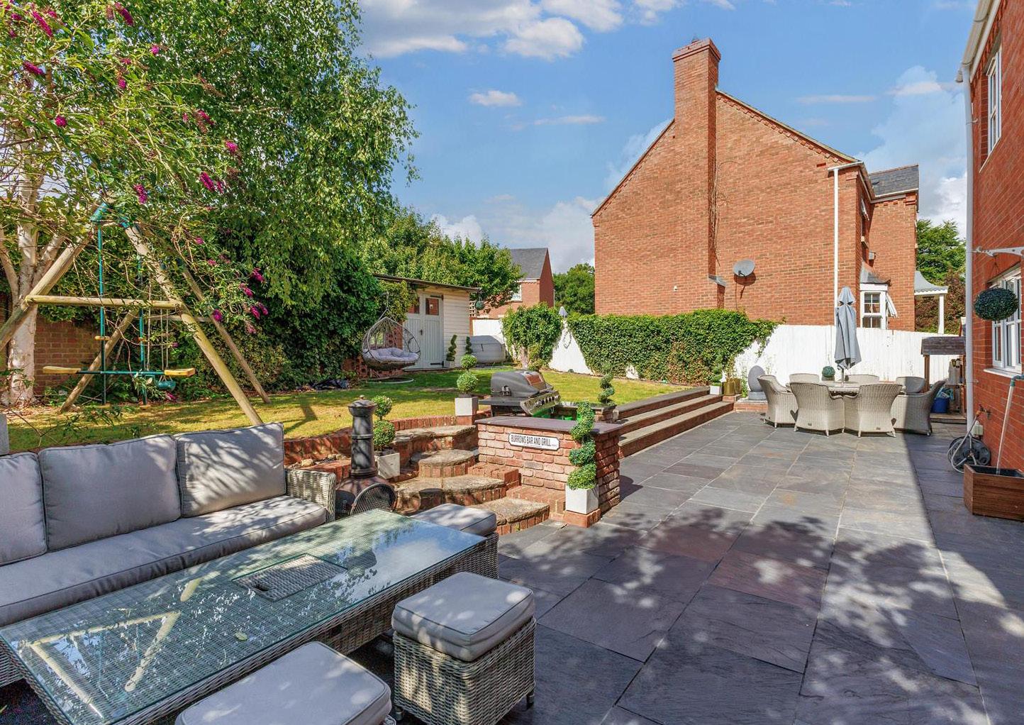 The double garage has been partially converted into a fantastic games room with a built-in bar, offering a dedicated space for entertaining or relaxing weekends at home. To the rear, the private, landscaped garden provides a tranquil retreat for relaxing and outdoor dining.