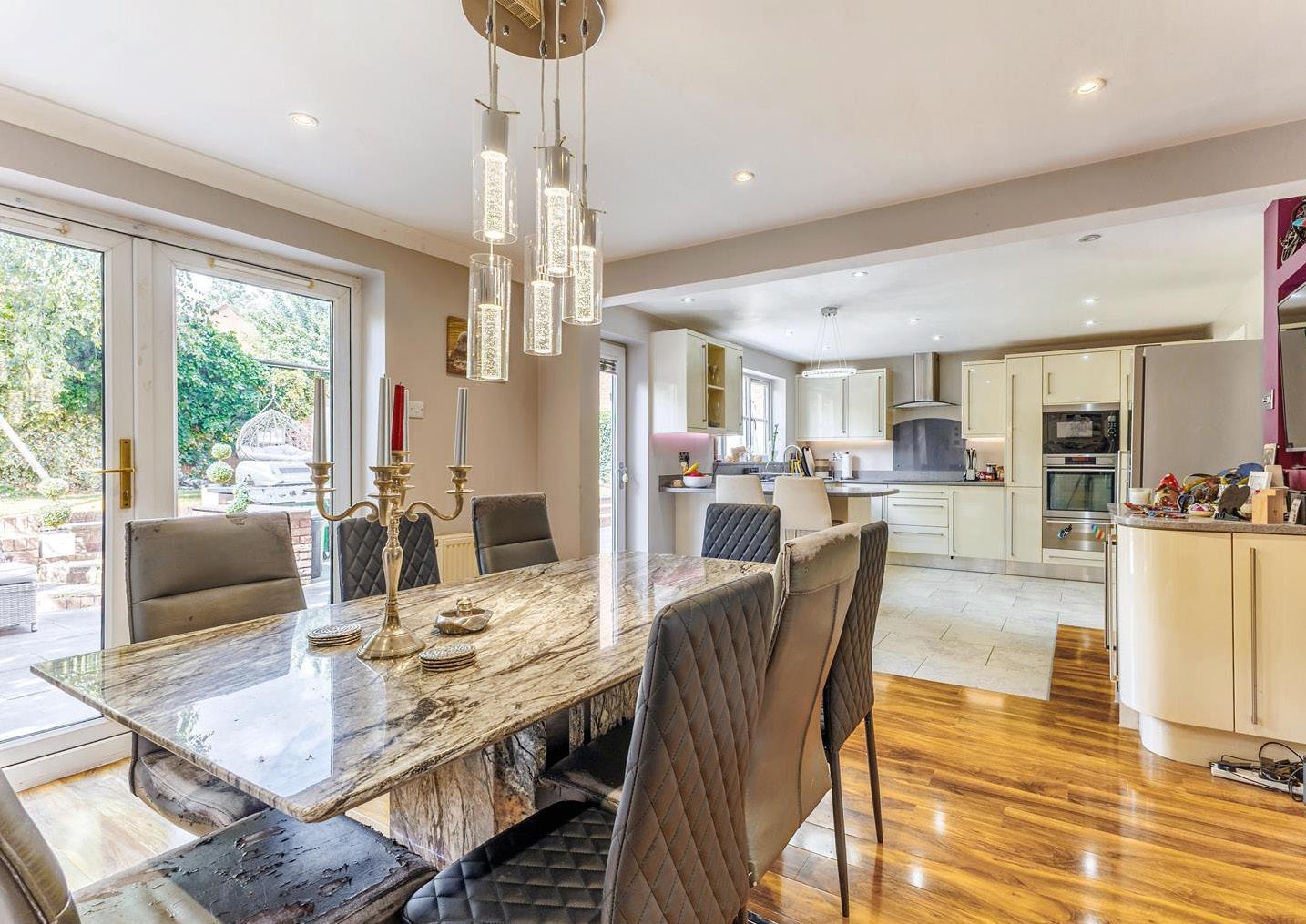 Upstairs, the sense of space continues with three generous double bedrooms, each with its own modern en-suite shower room—perfect for older children, guests, or multi-generational living. Two further wellproportioned bedrooms are served by a stylish family bathroom, ideal for growing families.