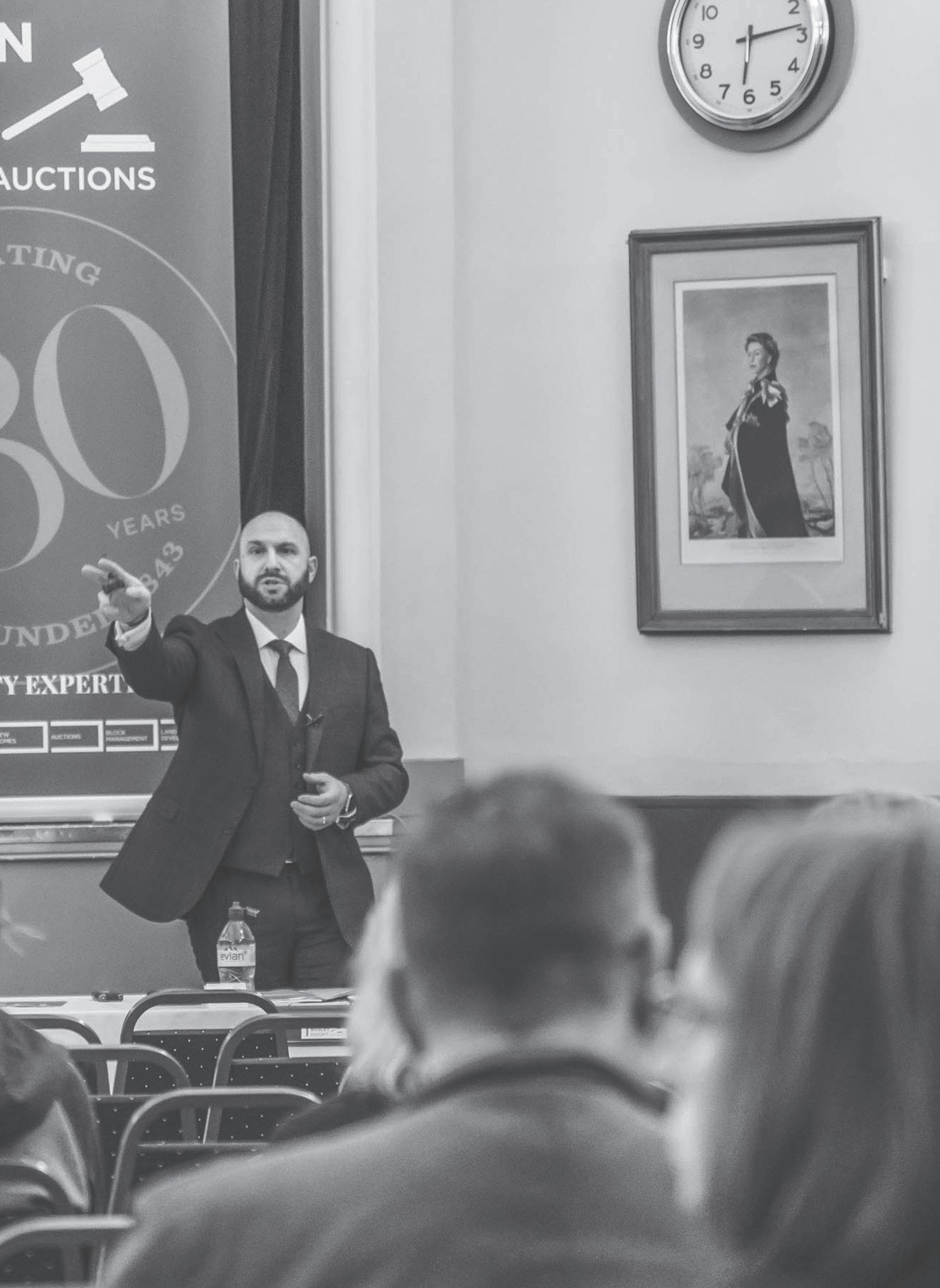 A: Contracts are exchanged as soon as the gavel has fallen. If you are the successful bidder, a member of our auction team will take you to the finance desk. You will then need to provide a 10% deposit (minimum £5,000) and pay your Buyer’s Premium. If you are unable to do this, the auctioneer has the right to re-offer the lot. If the property then sells for a lower figure the seller may claim any losses from you. You will then complete and sign the memorandum of sale before sitting with the person representing the vendor to complete and sign the contract of sale.
