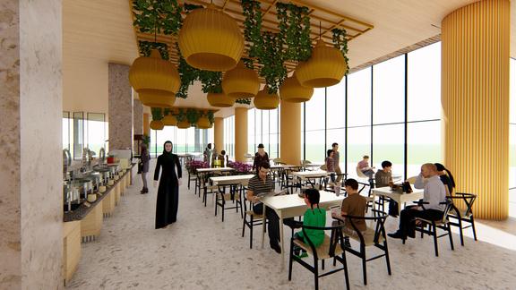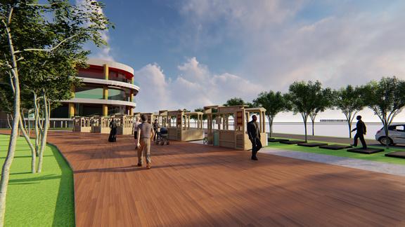 Letak bangunan yang berada setelah akses pejalan kaki (A) diharapkan dapat menjadi solusi kondisi tapak yang berada di dekat pintu stasiun MRT sehingga pengunjung dapat masuk ke tapak untuk menikmati area food street yang disediakan sepanjang jalan menuju bangunan.