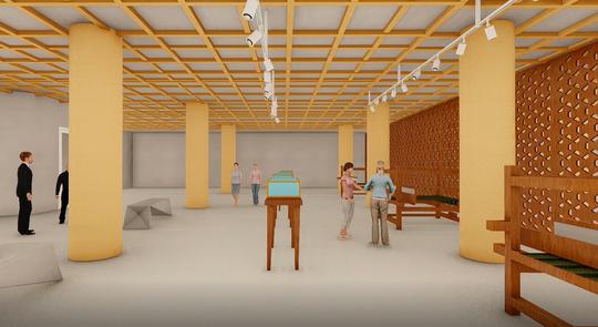 Berdasarkan aktivitas pengunjung yang sudah diketahui melalui analisa, maka pengunjung dapat melakukan workshop berupa pelatihan membuat batik atau tenun di dalam ruang workshop ini. Mengadaptasi kebutuhan masa kini, maka dari itu ruang workshop ini juga terdiri dari 2 lantai yang memiliki kantin di lantai 2. Kantin ini diharapkan dapat membantu bangunan Museum Tekstil ini dari segi ekonomi