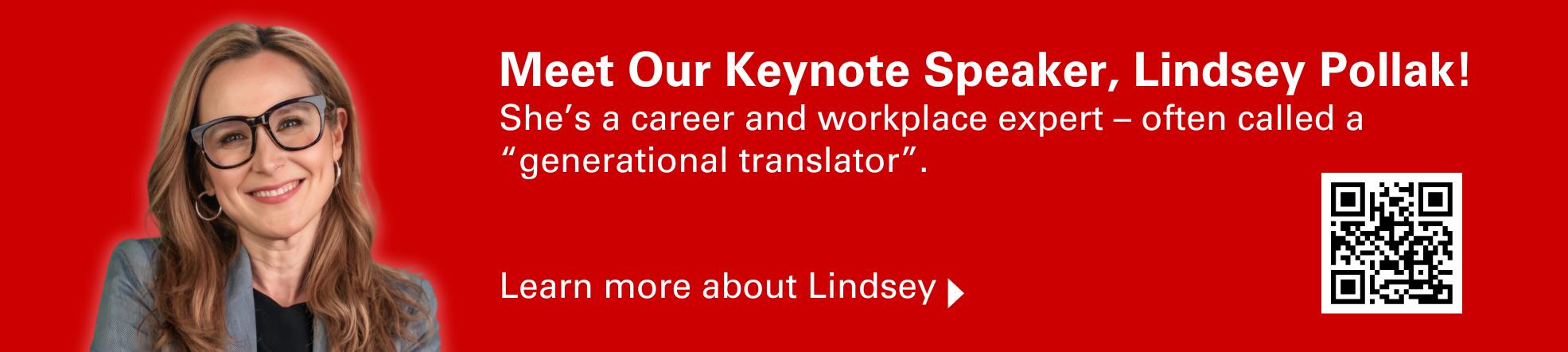 What if generational change is not a problem to overcome, but an opportunity for individuals and organizations to optimize? For the first time in history, five generations now share the workplace, and employees of all roles and levels must learn to work effectively with people who might be decades older or younger. In this dynamic, engaging and action-oriented keynote, New York Times bestselling author and multigenerational workplace expert Lindsey Pollak — often called a “generational translator” — will share her uniquely positive and datadriven approach to generational diversity.