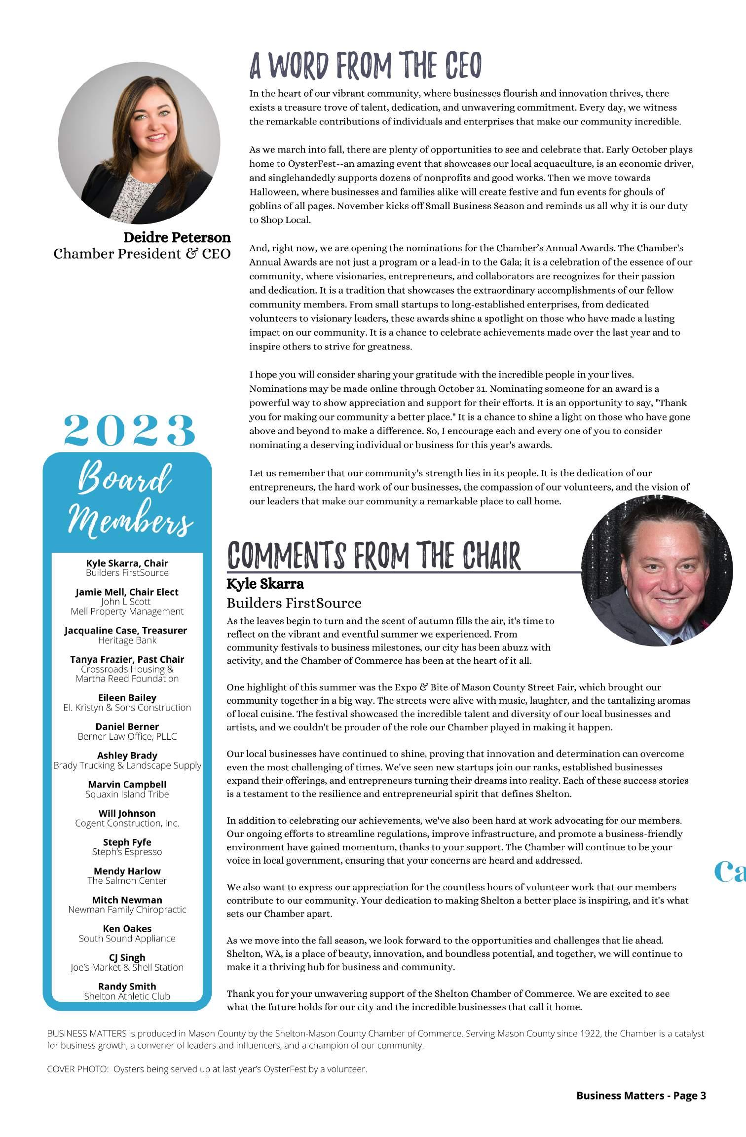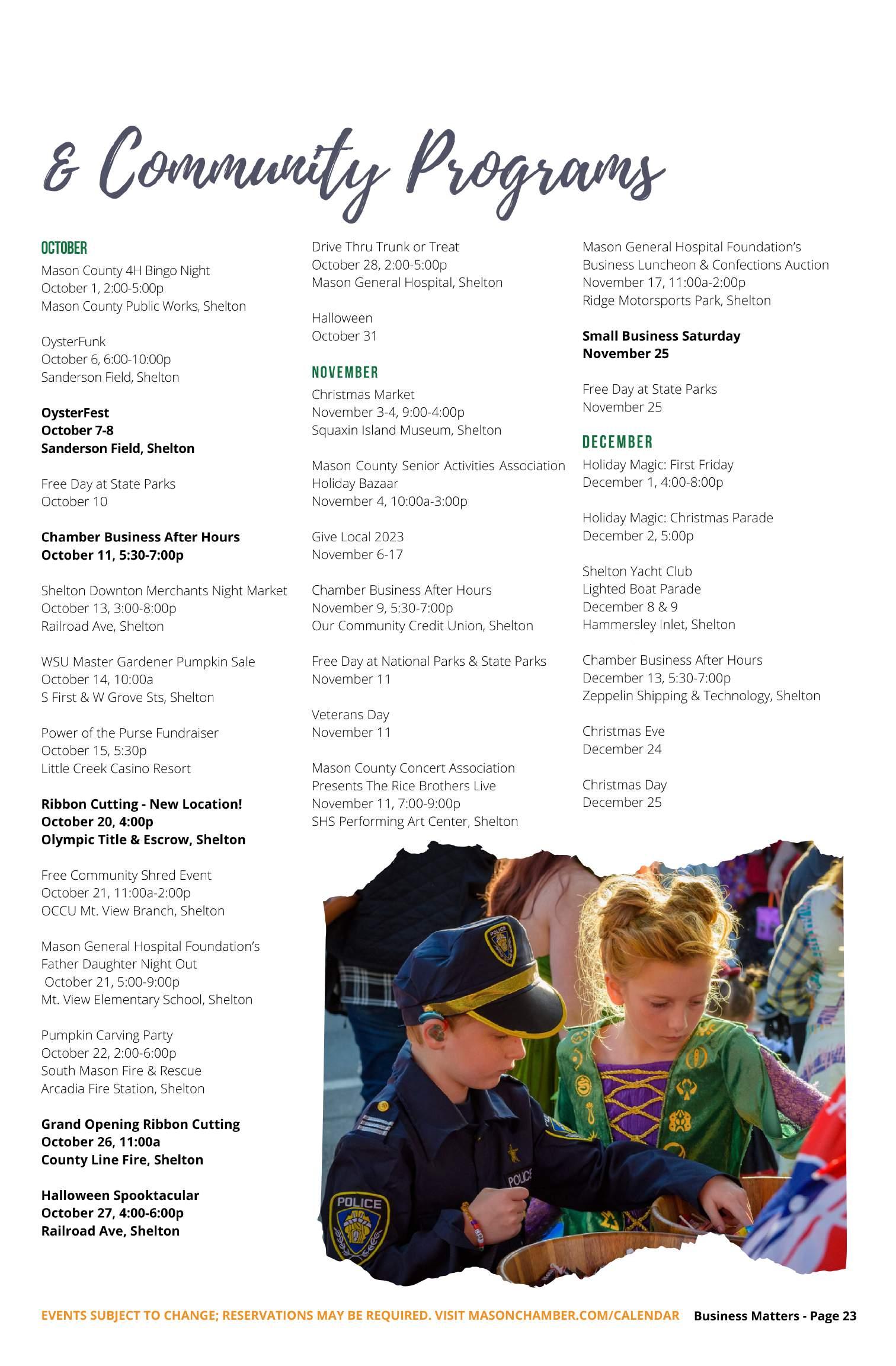 Business Matters is designed to feature Chamber member businesses, issues that impact businesses, community activities, and more. The fall issue highlights the West Oakland Bay Estuary Restoration project, a review of the City & County State of the Community, expert advice on mistakes to avoid with your health insurance, as well as an OysterFest preview and What’s Happening.