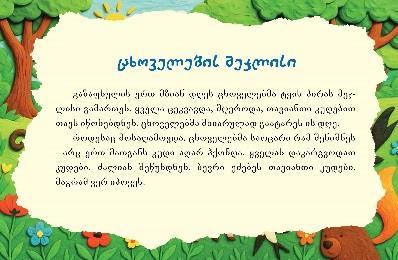; 18. ჭურჭელი; 19. ტექნიკა; 20. მუსიკალური ინსტრუმენტები; 21. ახალი წელი; 22. ემოციები; 23. ყვავილები; 24. ცხოველთა მრავალფეროვნება; 25. თევზები; 26. საპირისპირო ნიშნები; 27. მოდით დავითვალოთ; 28. შეკრება; 29. გამოკლება; 30. მოდით შევადაროთ