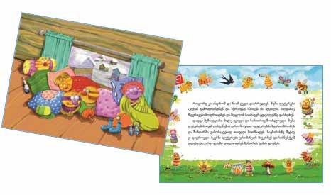 Book with puzzles – an innovative project created by us. The book is printed on cardboard and is binded with a tie. A teacher or a parent can untie it and use each page as a card. Each card portrays different natural habitats and the colors on the card match the habitats. Every page of the book is 1 cm longer than the previous one and that creates a great visual effect for children. The text of the story is simple and fun to read and has eye catching illustrations. Through the dialogues of the characters – animals, the kids get to know different environments on Earth, natural habitats of animals and their connections. The book also includes puzzles. Children play with puzzles and analyze the story – connect each piece of the puzzle with an animal to another piece with their natural habitat. The books and the puzzles are placed in a cardboard box. The project has been published in Georgian and English languages.