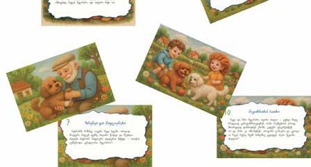 Smart Dog Buga is a story card game for preschoolers. It is based on the story “Smart Dog” by Iakob Gogebashvili and aims to develop speech and logical thinking, which play a crucial role in the child’s development. The teacher or parent instructs the child to arrange the story cards in sequence, according to the content conveyed in the story; observe and describe each story picture, and verbally convey the content of the story. The child develops the skills of describing the sequence of actions and fluent speech.