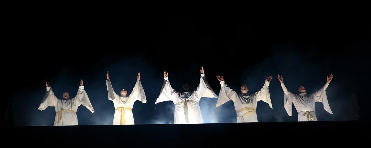 through public donation. Those who attend are guaranteed to have a completely unique experience. The full lighting causes the environment to feel more open and friendly since every action on stage is easy to see. A huge aspect adding charm and wit to performances is the phenomenal acting. Before the performance even begins, the audience is serenaded with music performed by the actors. Although the songs are modern, they relate to the theme of whatever is being performed. Every actor seems to be multitalented, playing many instruments from the bass to the flute. On stage, the actors are flawless and bring life and excitement to classic dramas. Their tire-