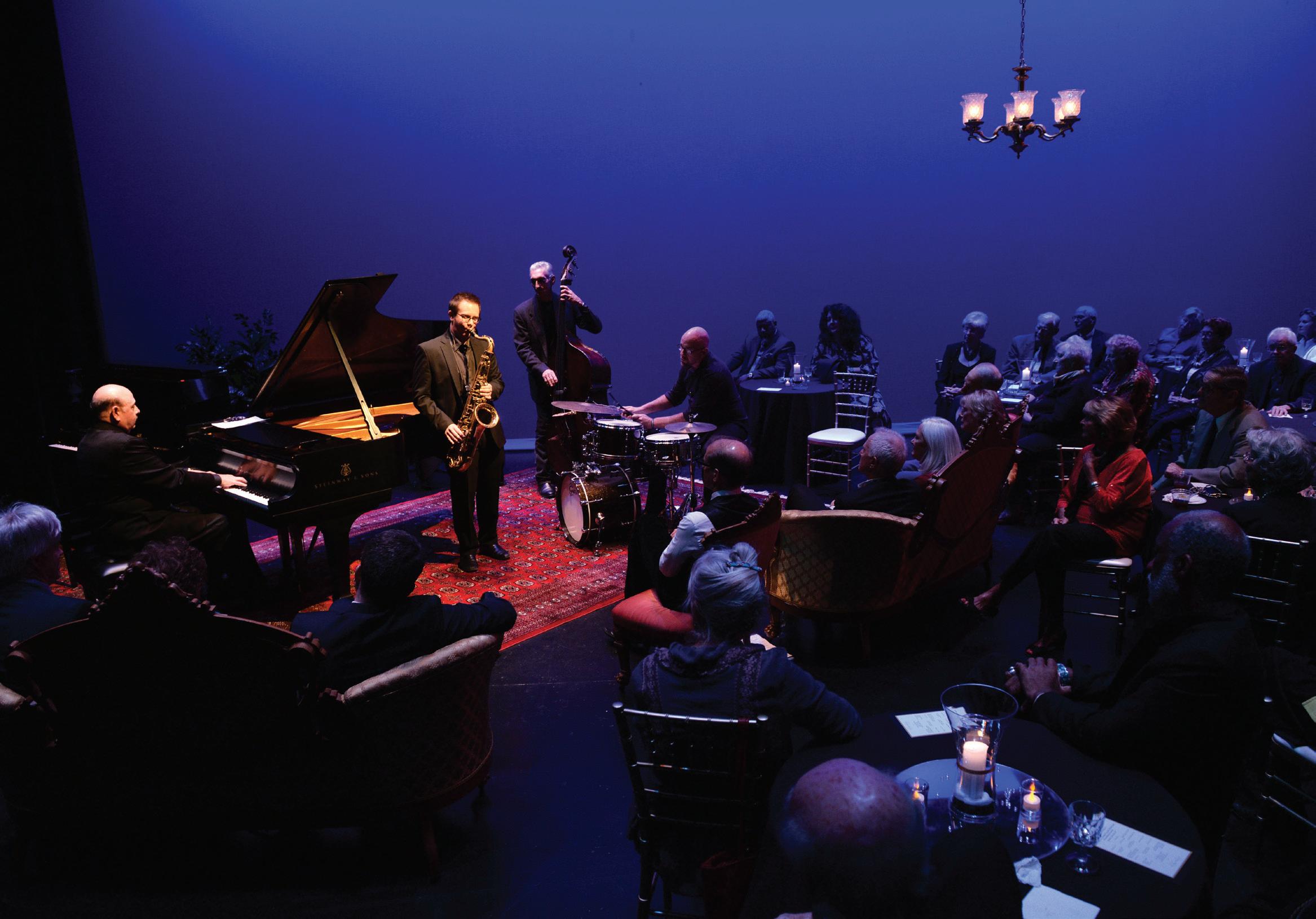 The Frank Center stage was turned into a salon club setting with guests enjoying appetizers and wine by candlelight. Seated around two Steinway pianos, guests enjoyed musical selections ranging from Chopin to Billy Joel to Billy Strayhorn.