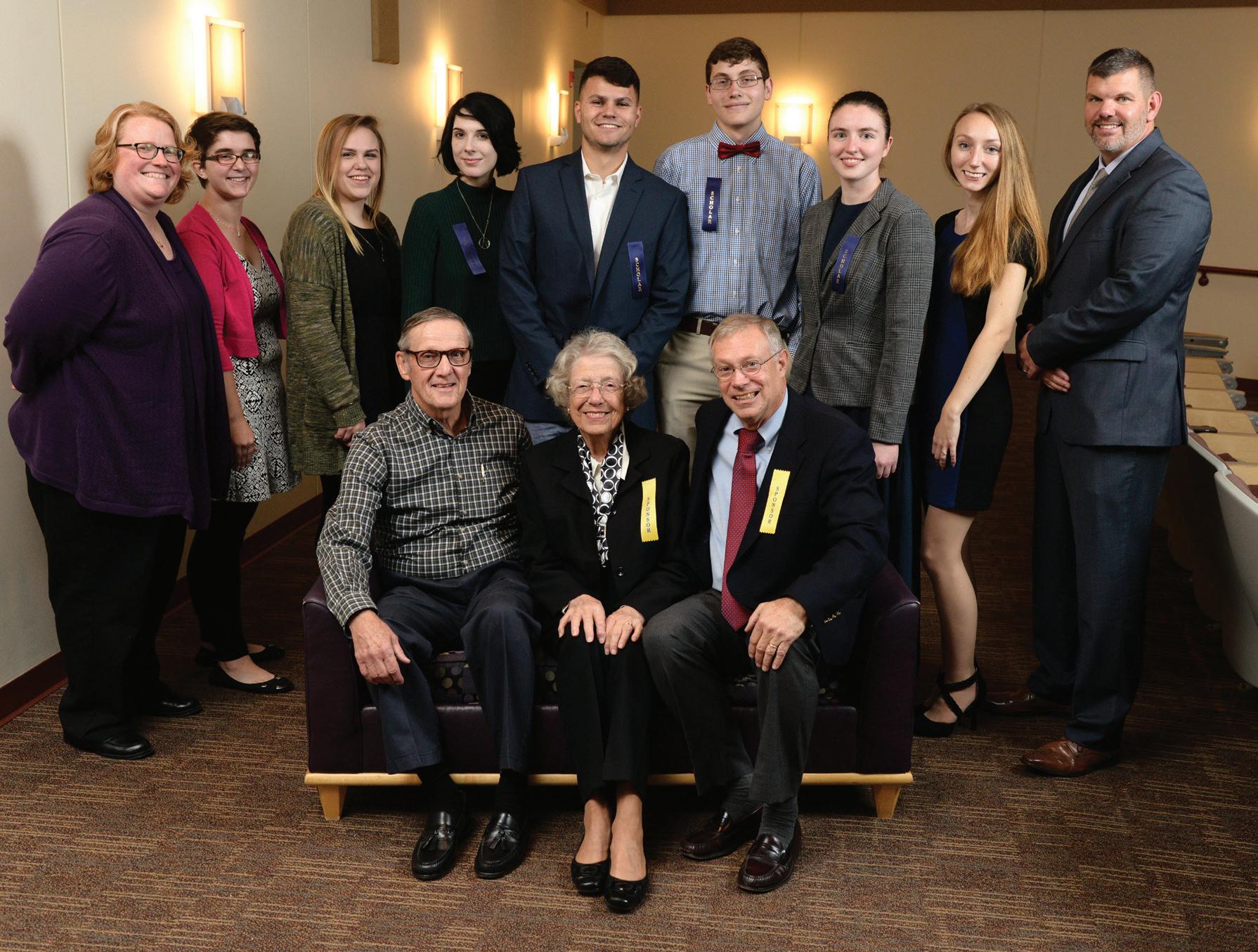 Recipients of the James and Katherine Moler Academic Scholarship pose with Shepherd University Foundation board members. Pictured front row (l. to r.) are Al Lueck ’67, Betty Lowe ’52, and David Newlin ’76; back row, Dr. Heidi Hanrahan, Claire Tryon, Hailey Sparks, Ashley Fritsch, Christopher Hussion, Kevin Turner, Linnea Meyer, Erica Robinson, and Christopher Colbert ’95.ook for the helpers.” This sentiment, attributed to beloved children’s television host Fred Rogers, is often invoked in times of disaster and tragedy, but is no less applicable to our everyday lives.