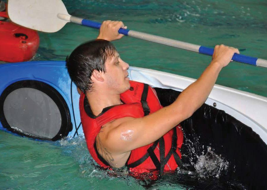 Kayak football games take place in an indoor swimming pool and combine kayaking skills with those of football, water polo, and hockey, becoming a fun training tool for novice kayakers. To learn more about Team River RunnerShepherd and the Storm-Kersey Memorial Scholarship, see page 27. •