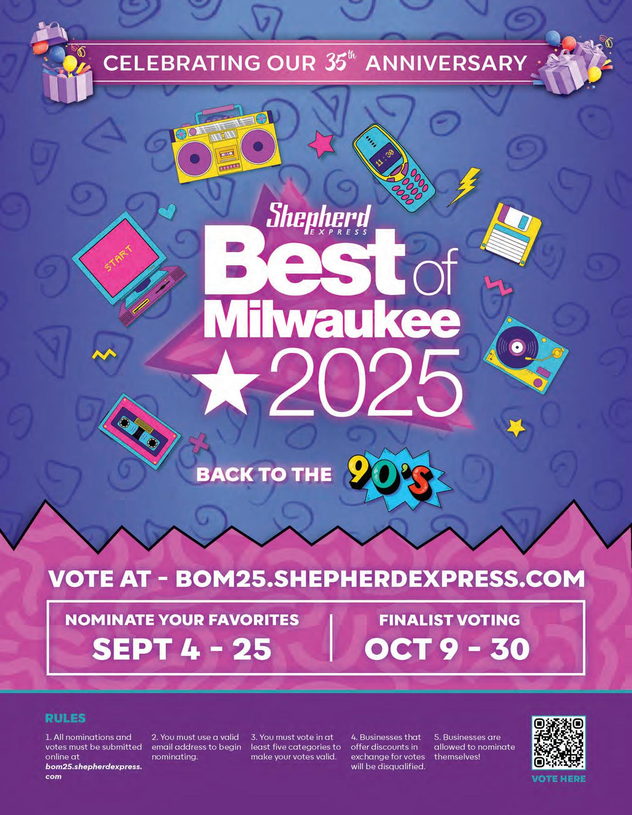The Shepherd Express is proud to be presenting the 35th annual reader-generated Best of Milwaukee competition. The Shepherd’s Best of Milwaukee (BOM) is the oldest, largest, most prestigious, and most trusted, reader generated best-of competition in the state of Wisconsin.