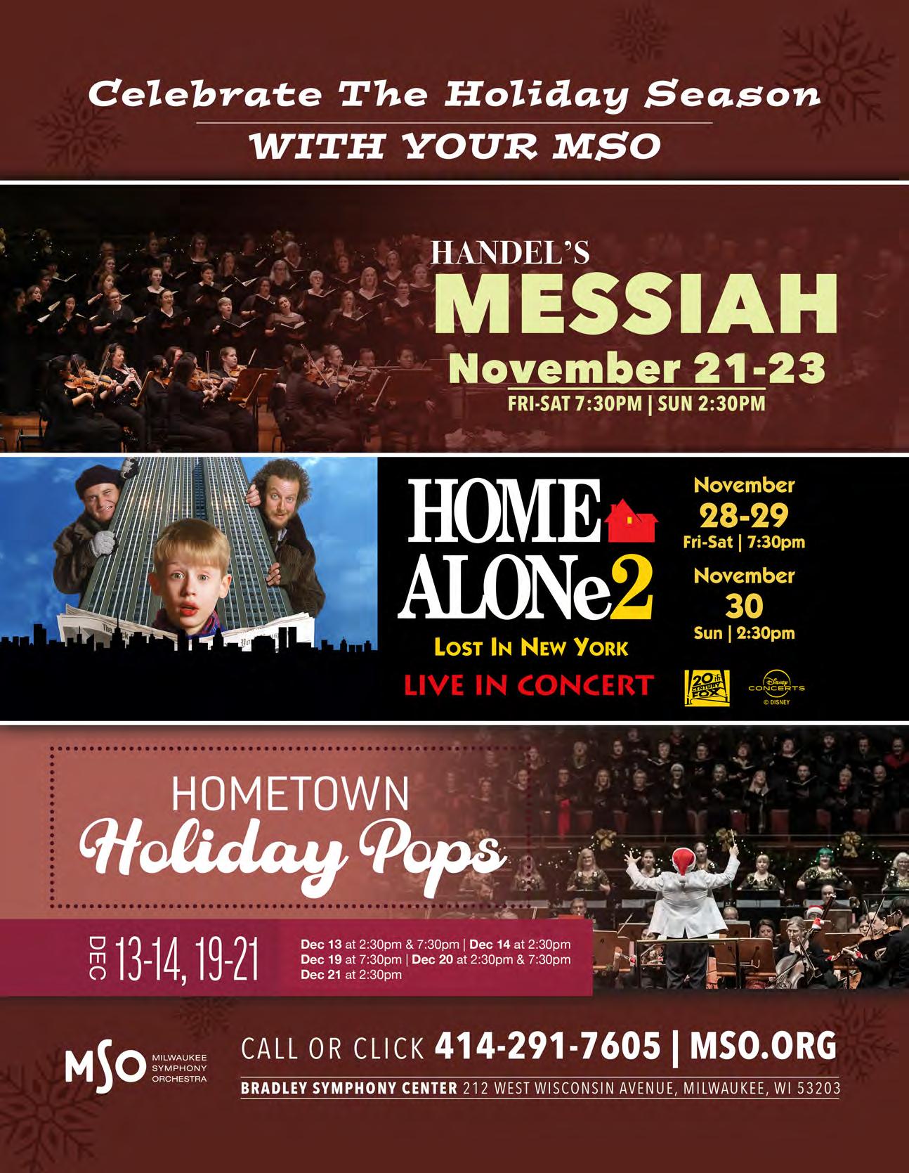THE WIZARD OF OZ WITH ORCHESTRA AT BRADLEY SYMPHONY CENTER (212 W. WISCONSIN AVE.): The Milwaukee Symphony Orchestra hosts this delightful afternoon where live music meets the iconic 1939 film. Hear the familiar score like never before when you purchase tickets to the 2 p.m. event via www.mso.org.