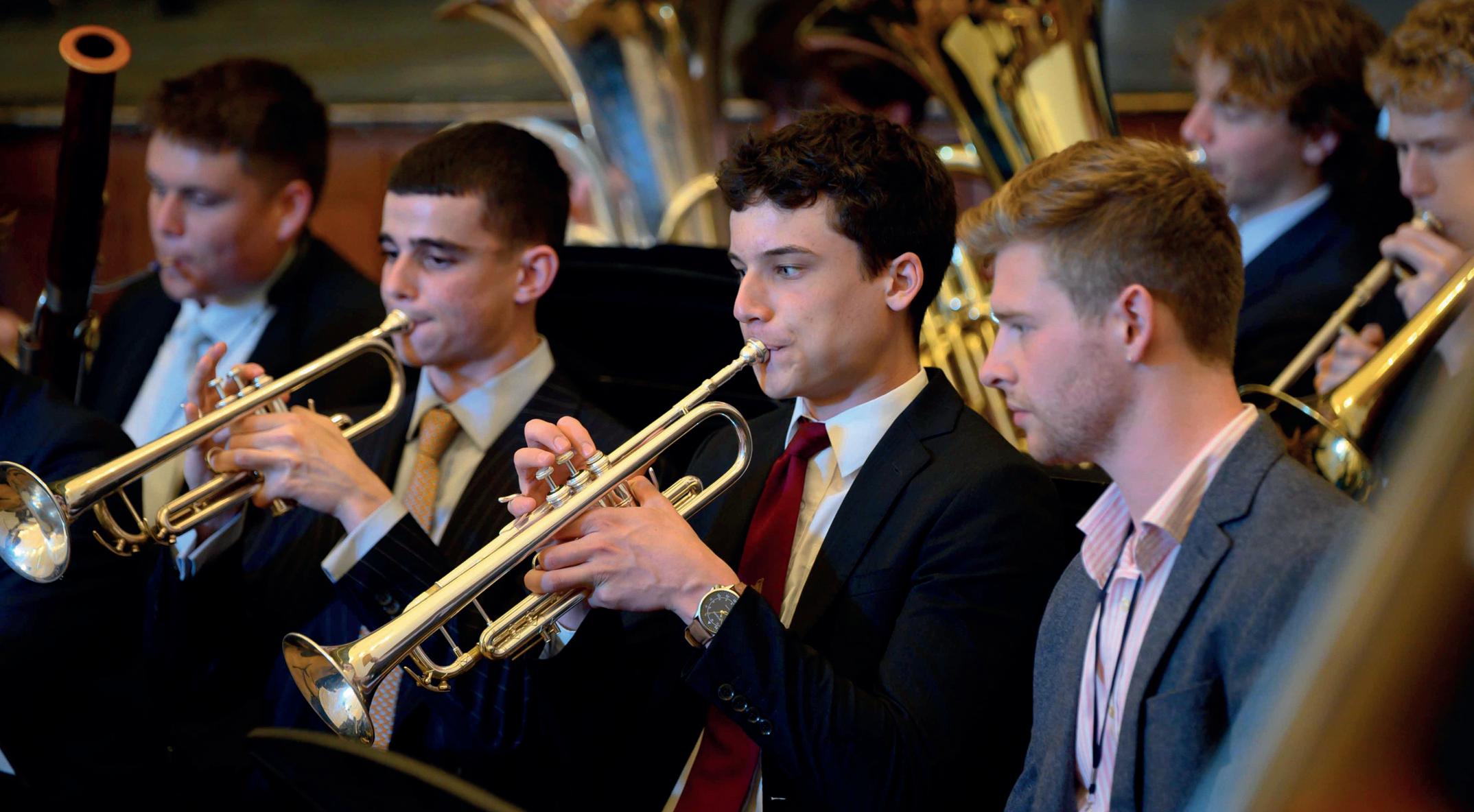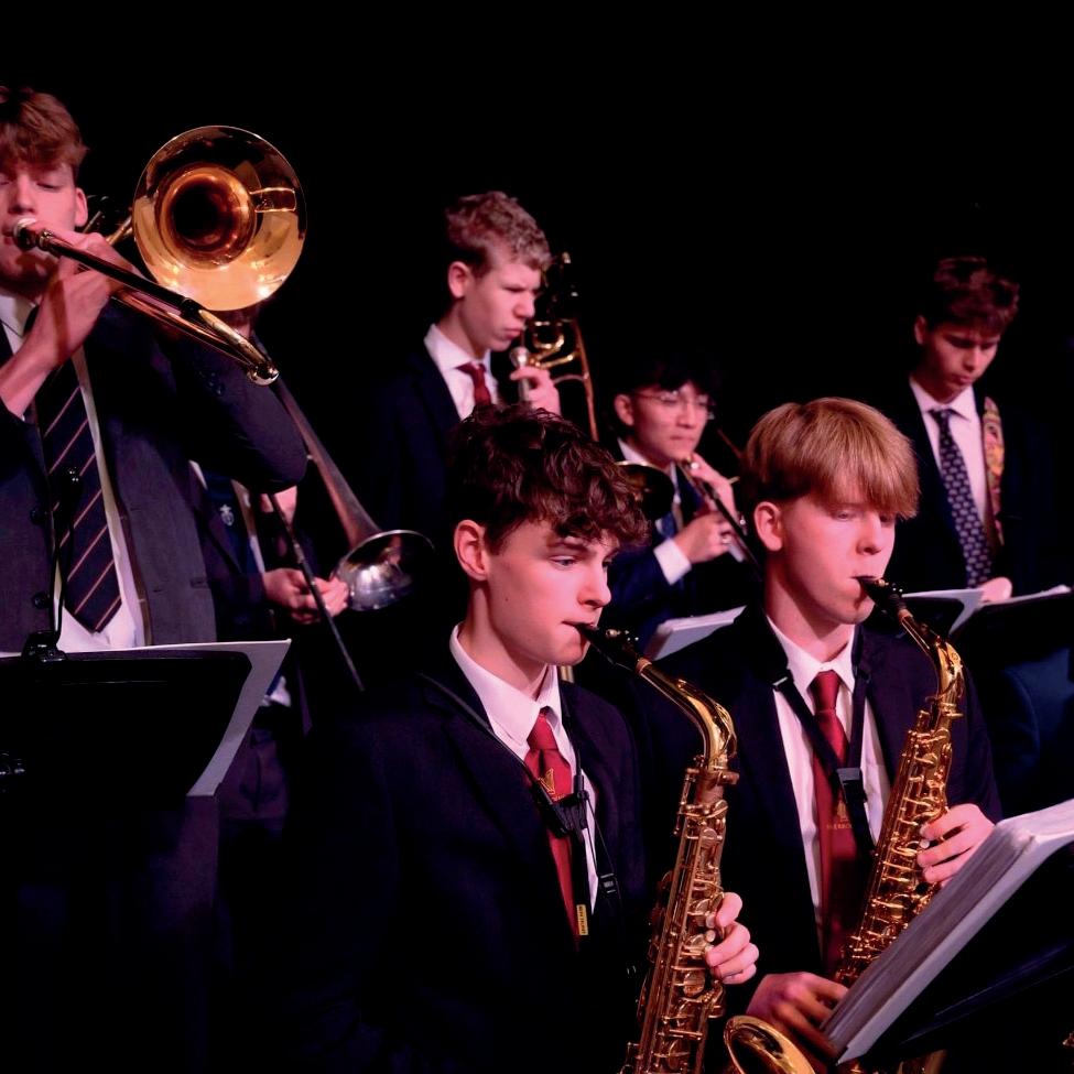 The Swing Band, with vocalists Orlando Tavener Sch.Mus (U6b) and James Coleman Sch.Mus (U6a) and whose membership is listed on the Gala Concert programme, was on an undoubted high this year with a trumpet section (Henry Cannon Sch.Mus (U6c), Charlie Burtt Sch.Mus (U6c), Archie Beardsell (U6f) and Archie Gibbons (5f)) that was quite exceptional. A similarly strong trumpet section a decade ago became professional musicians with two of them returning for the gala concert.
