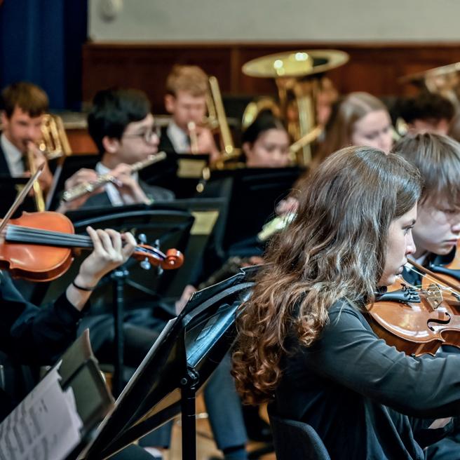 invitation, was enlarged in performing number with the inclusion of nearly fifty Old Shirburnian musicians—many of them of now professional—either playing, singing, or sitting in the audience. A highlight of the evening was the Radio Orchestra’s performance of New York, New York (the lush strings of the Concert Orchestra combining with the orchestral woodwind section and the Swing Band saxophones, brass and rhythm section) with returning Old Shirburnian professional singer Robert Folkes (a 12), whilst the extraordinarily rich