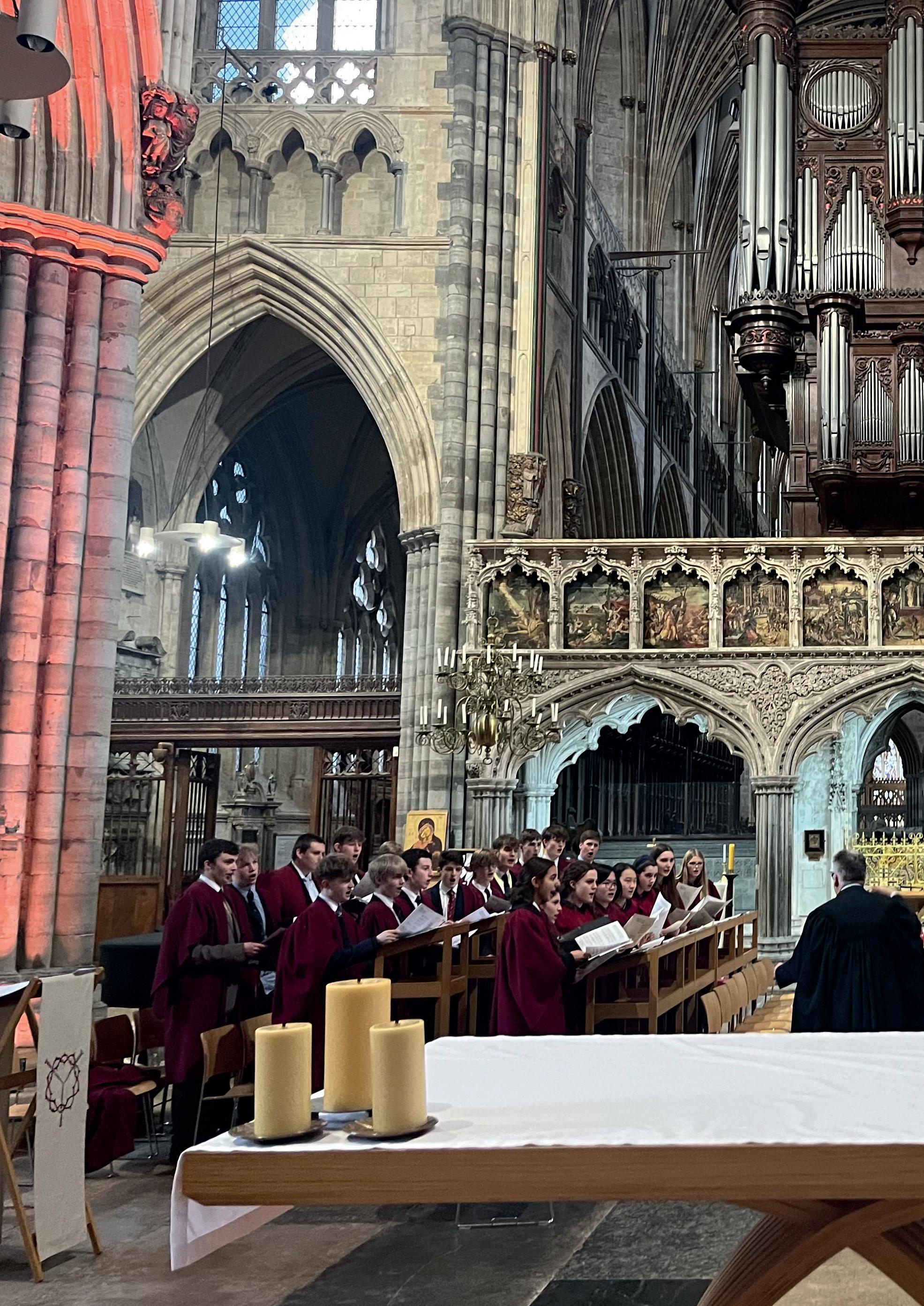 Both choirs have been on particularly good form this year with a strong Upper Sixth membership and some particularly good ex-cathedral tenors (sometimes a rarity, but not for the last four or five years). Whole School Abbey Services continued to take place unfailingly on Wednesdays at 6.30pm and Sundays at 7.45pm with music ranging from the sixteenth century to the present day sung by both choirs. An online archive of the Music Lists is currently being prepared.