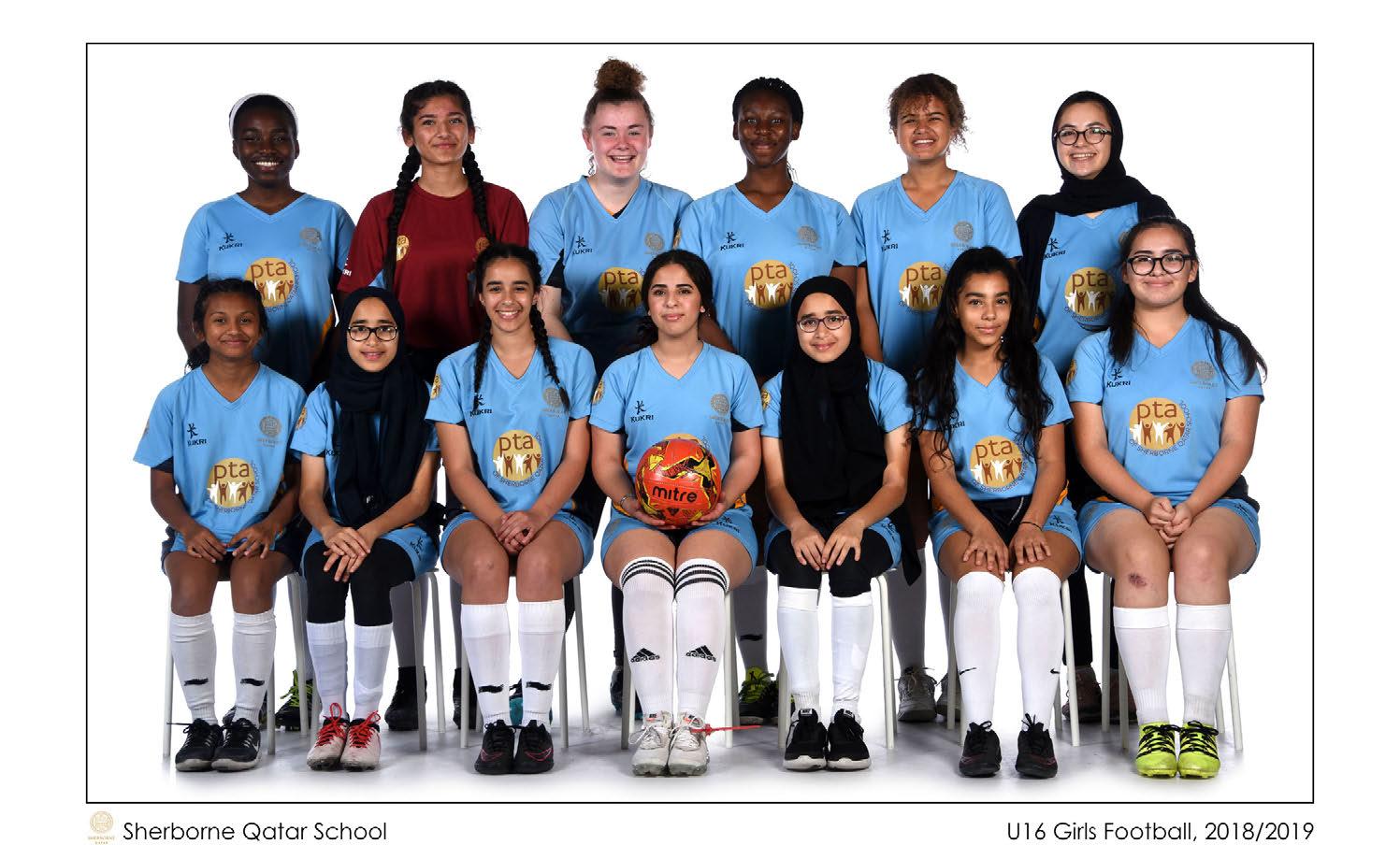 Back Row (L-R): Vivian Umoh, Kashmala Afridi, Roisin O’Sullivan, Oluwafolawemi Olowu, Norain El Gebely, Jana ElBanna Front Row (L-R): Navashini Surenthiran, Khadija Ghaly, Halaa Saber, Alanoud Al Thani (c), Maryam Ghaly, Safia Yousef, Rachel Hallett