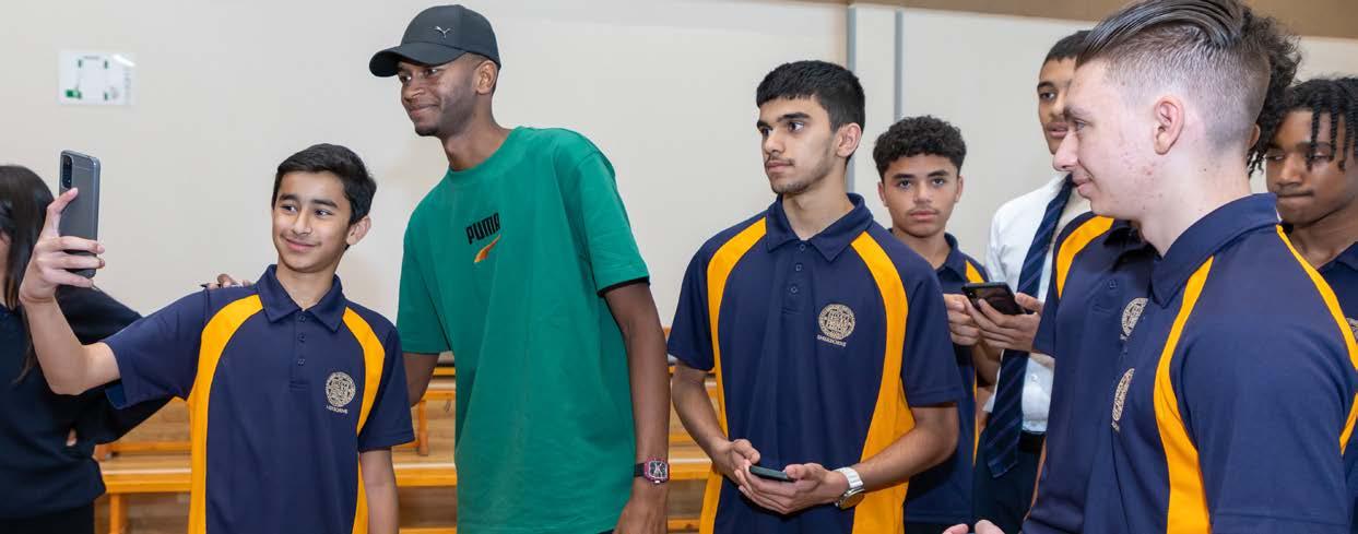 Qatar’s World Champion and Olympic Gold medalist high jumper, Mutaz Barshim, met 50 lucky pupils who were selected from those who have represented Sherborne in athletics this year or have chosen to study iGCSE PE. They got the chance to ask him questions about his career, take selfies and get his autograph. A few lucky pupils even got to perform their high jump skills for him and get tips on how to improve.