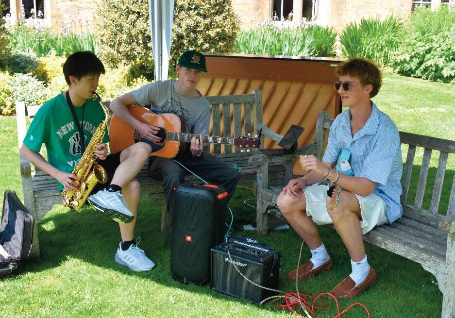 This year’s CourtsFest was a resounding success once again as the big School room and the Courts were transformed into a mini festival for the Sixth Forms at Sherborne School and Sherborne Girls Music was at the heart of the event, with more than two and a half hours of performances showcasing the talented bands and DJs from both Schools, which was livestreamed on a big lED screen in the Courts. we were fortunate that the weather remained dry while Sixth Form pupils enjoyed wood-fired pizza, fresh churros and drinks The funfair stalls and games also proved to be very popular, as did the big inflatable prizes