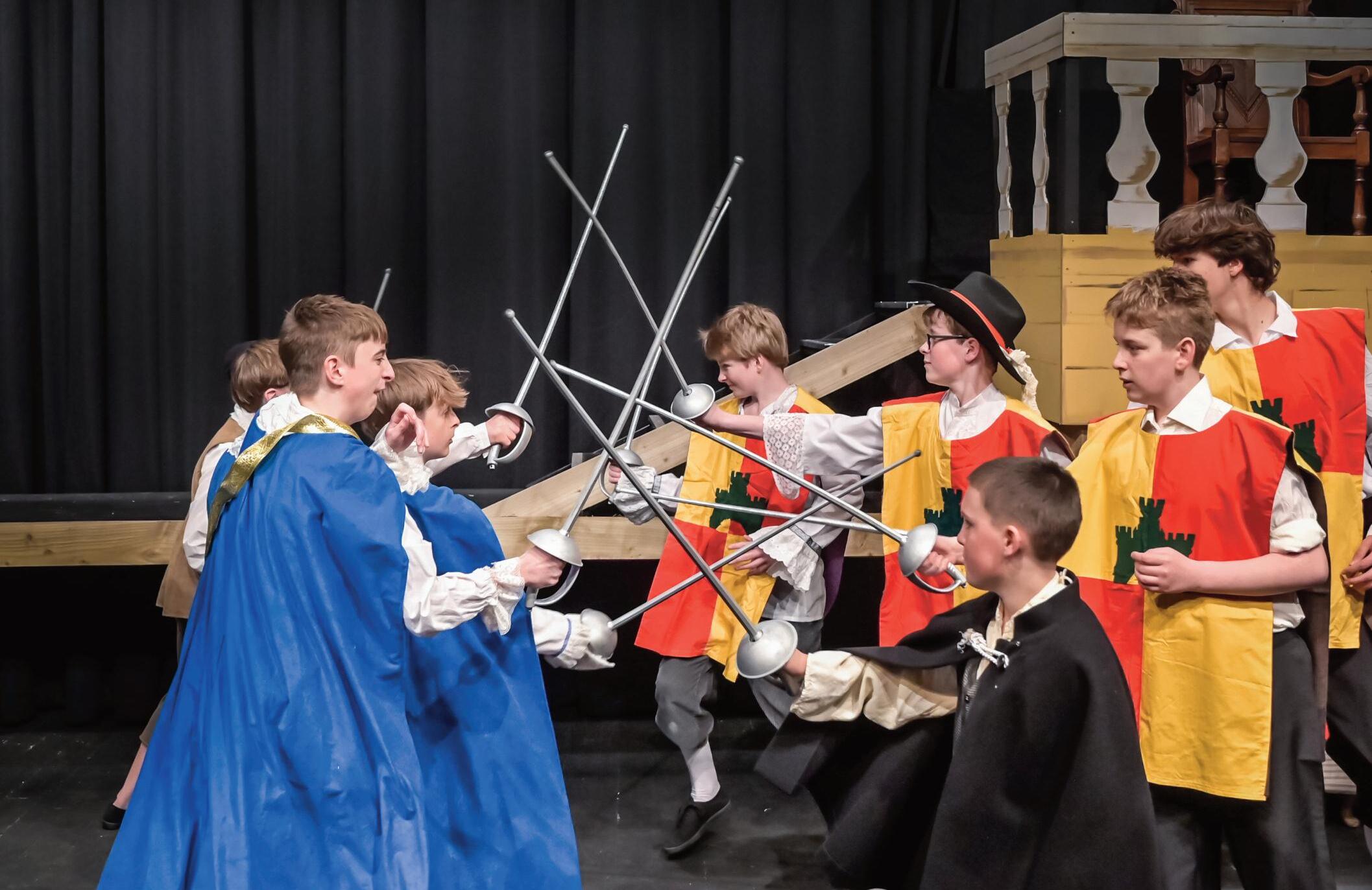 The junior school play provided us all with a hugely enjoyable time – there was humour, drama, adventure, and romance. One could heave a sigh of relief when the villains were defeated after much toing and fro-ing (figuratively and literally) That was, however, tempered by melancholy, as Constance and d’Artagnan’s love for each other came to a desperate end (she was poisoned).