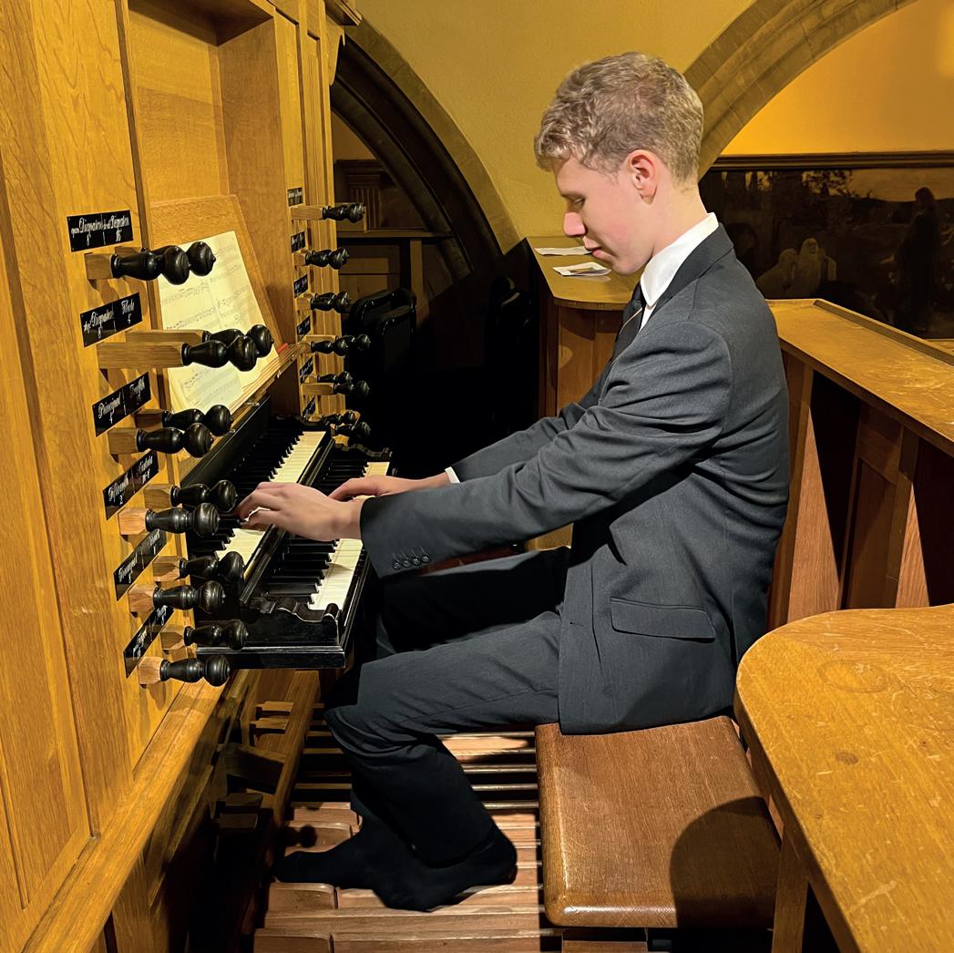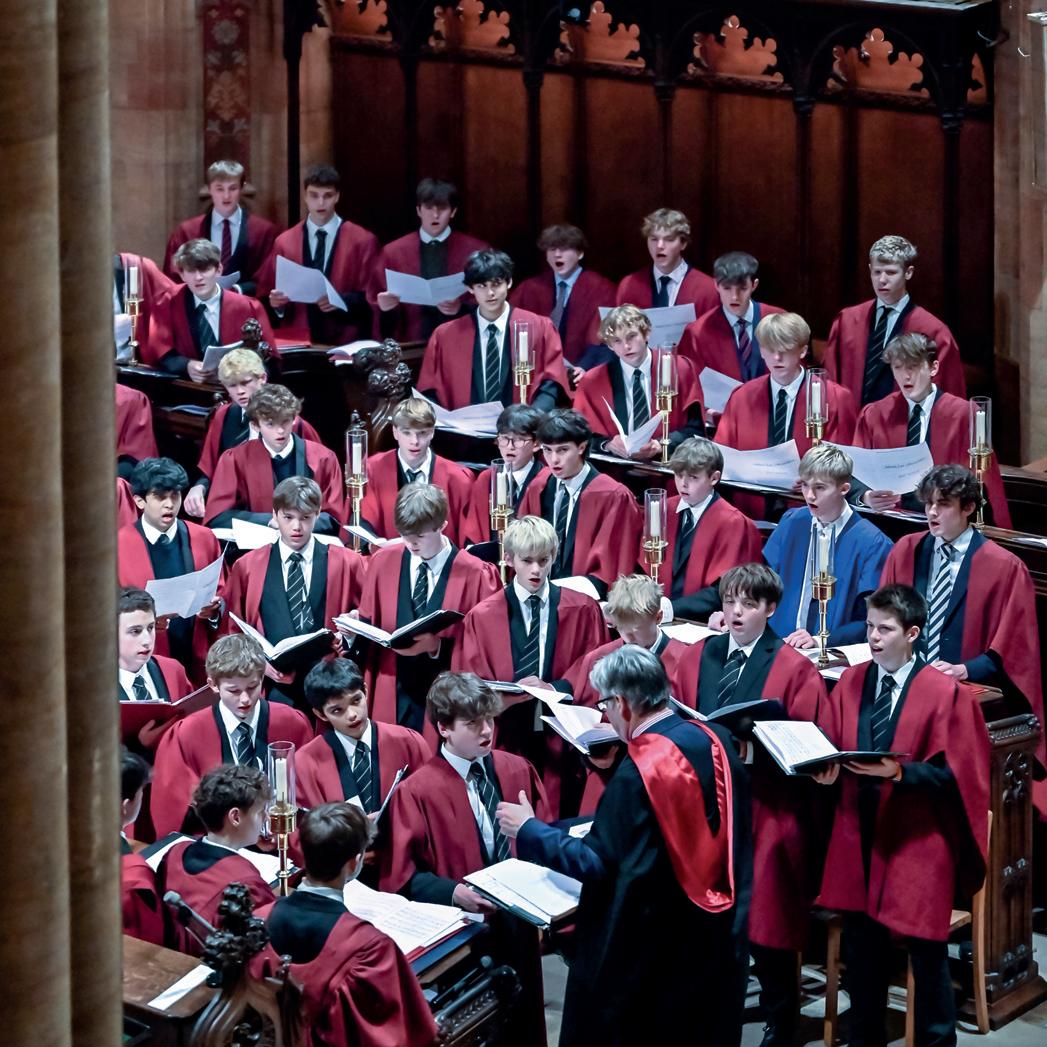 enough and indicative of the warmth and gratitude with which these 2024 Leavers were received. Solo performances of music by J S Bach, Vivaldi, Hummel, Weber, Liszt, Mozart and Britten, and a Close Harmony group organised by the Leavers themselves (singing And so it goes), provided variety as well as quality. The Jazz Group playing Charlie Mingus’ Moanin’ with Thomas Arbon Valderrama’s Sch.Mus (U6e) characterful opening on the baritone saxophone, and the Trio in Softly as in a morning sunrise led by the now legendary Cassius Hammick