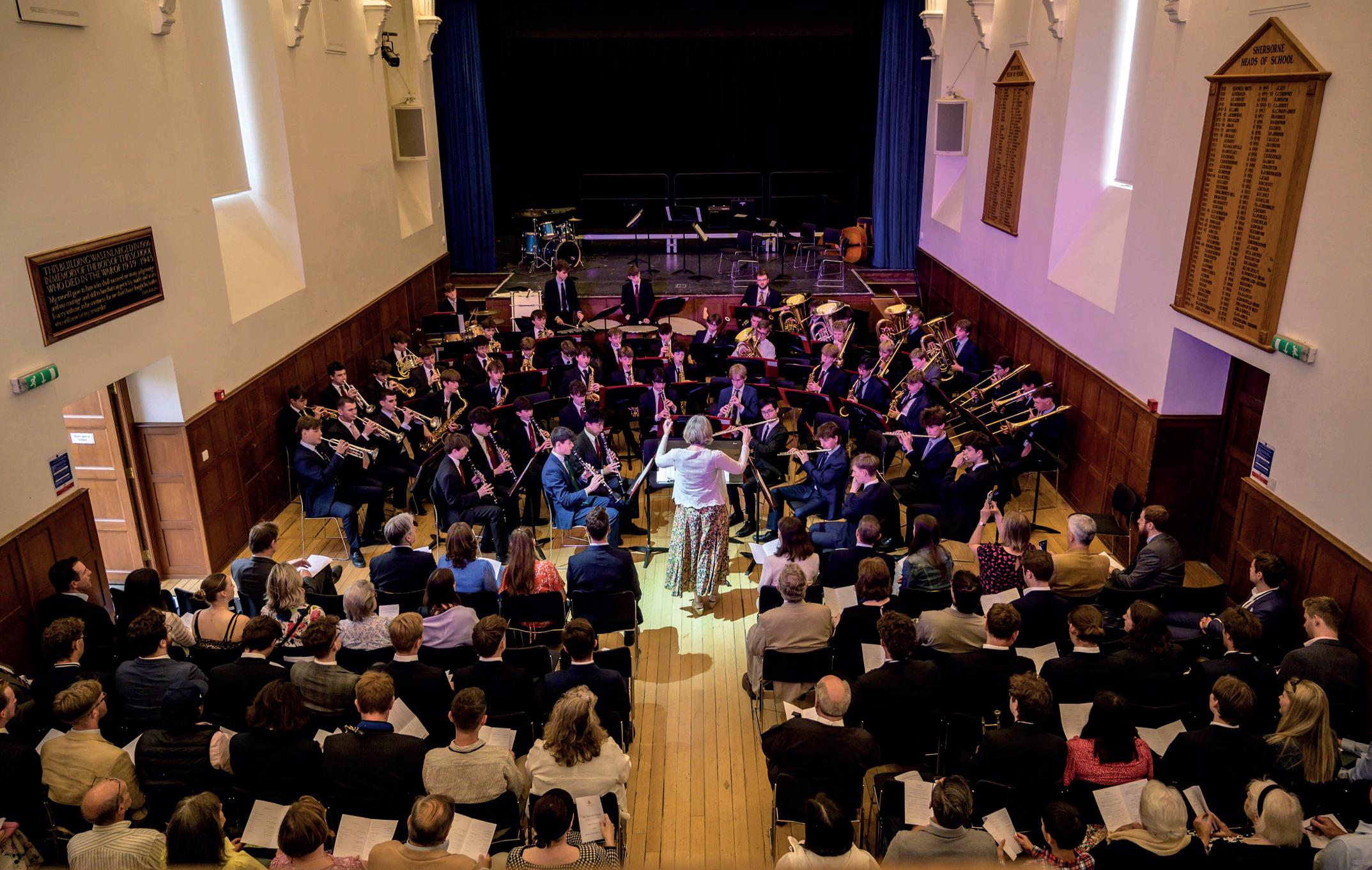 TTBB arrangement of Dyson’s Magnificat in D by the Chamber Choir, with many OS extras, accompanied by Mr Costin on a specially installed organ, was a memorable choral feast. Not to be outdone by the Swing Band’s fifteen-minute rendition of Pennsylvania 6500, complete with many solo ‘breaks’ by current and old Shirburnians, the mighty Wind Band—under the baton of Mrs Jackson—was in stellar form with a medley from Guys and Dolls