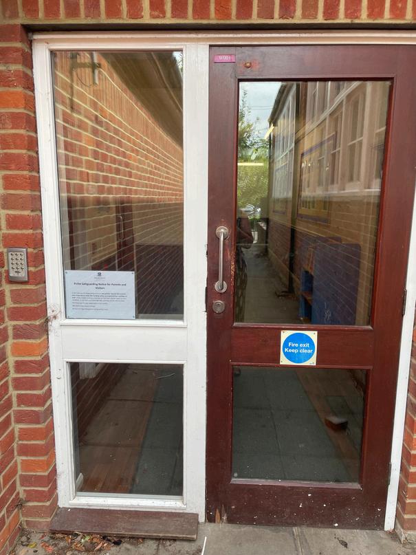 In the morning, Year 5 and 6 children enter the building through the door at the front of the building (marked with a star on the plan) The door opens at 08:15. A teacher will open the door for you and let you in. Parents or